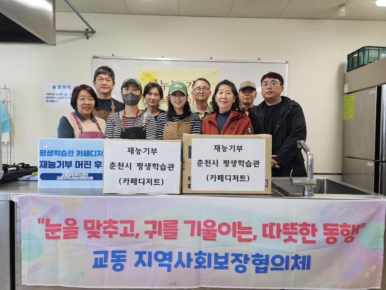 춘천 평생학습관 카페디저트 강좌반 수강생 12명은 지난 10월 19일 손수 만든 머핀 140개를 만들어 돌봄이 필요한 이웃에 전달해 달라며 교동행정복지센터(동장 최영애), 교동지역사회보장협의체(위원장 박남숙)에 전달했다.