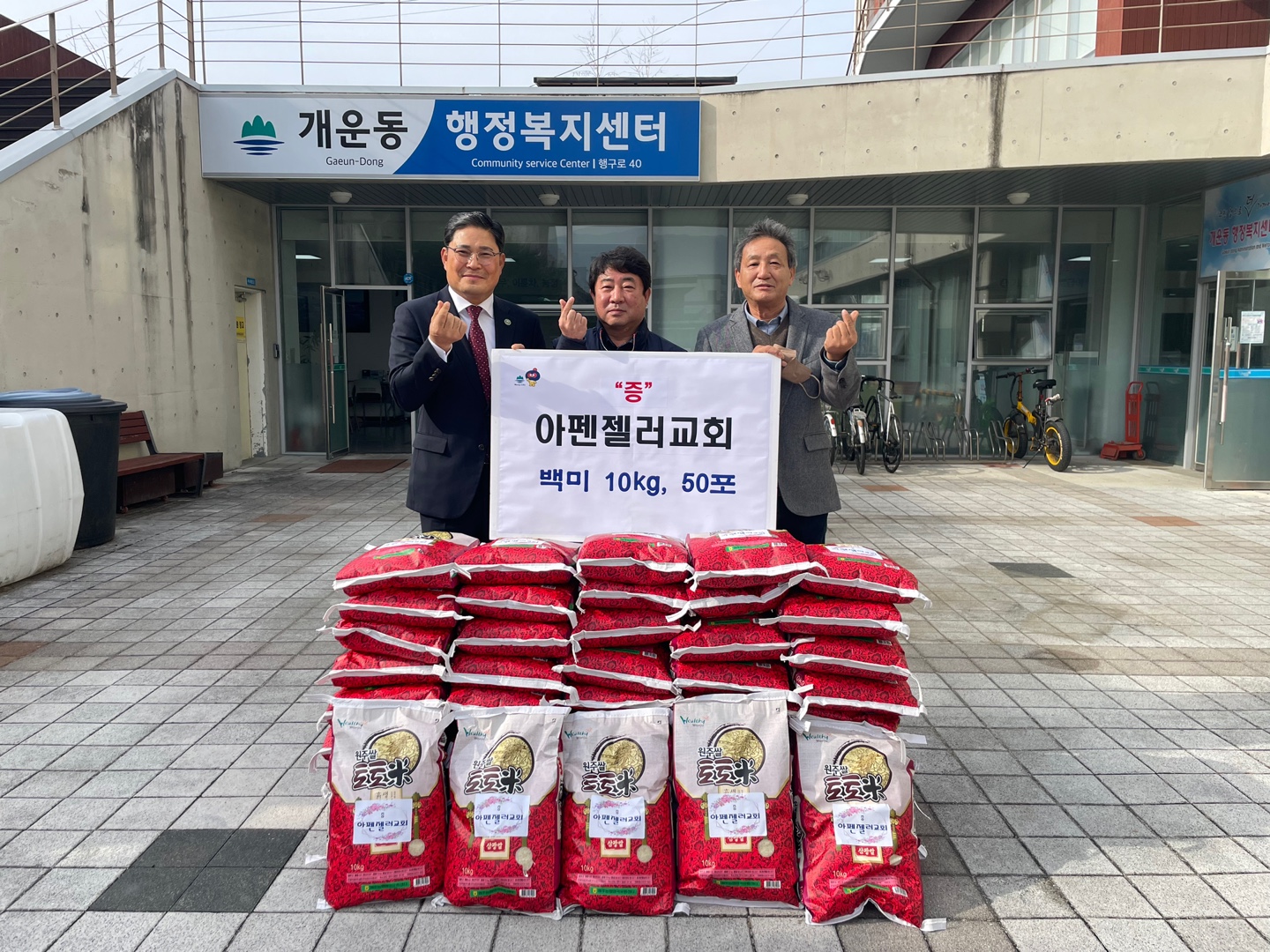 [강원사회복지신문 김도연 기자]=아펜젤러교회(담임목사 차용희)는 지난 11월 22일 관내 취약계층의 따뜻한 겨울나기를 위해 백미 10㎏ 50포를 전달했다. 아펜젤러교회는 매년 주위의 어려운 이웃들을 위해 연탄봉사 및 백미 지원 등 나눔 활동을 꾸준히 실천해왔다. 차용희 목사는 "작은 정성이지만 소외된 이웃들이 어려운...