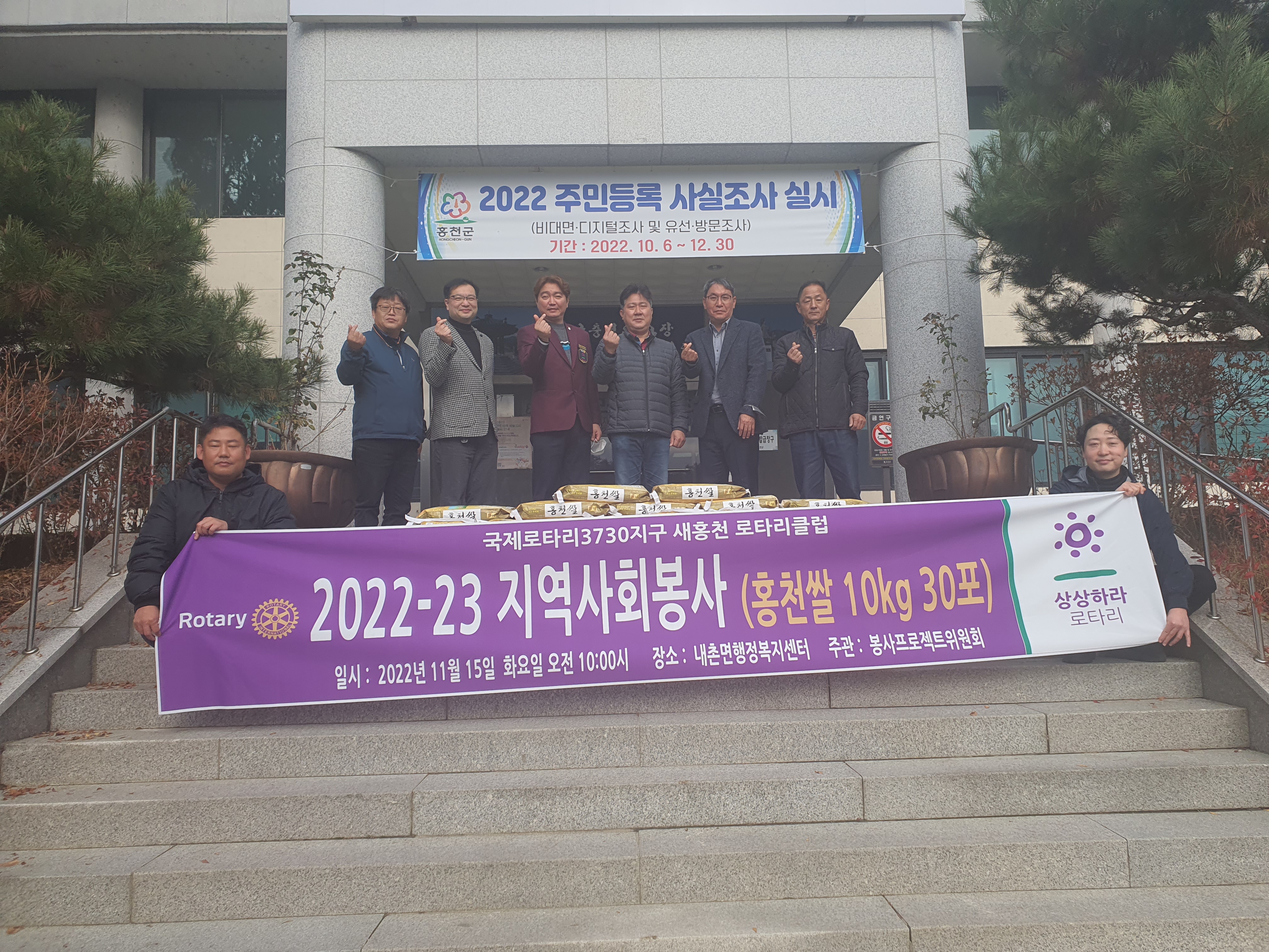 [강원사회복지신문 홍기한 기자]=새홍천로타리클럽(회장 박원근)은 지난 11월 15일 홍천군 내촌면행정복지센터를 방문, 소외된 불우이웃을 위한 쌀(10kg) 30포를 전달했다. 박원근 회장은 "이번에 후원한 쌀이 월동준비에 어려움을 겪고 계실 이웃들에게 조금이나마 도움이 됐으면 좋겠다"고 말했다. 정윤선 내촌면장은 "새홍...