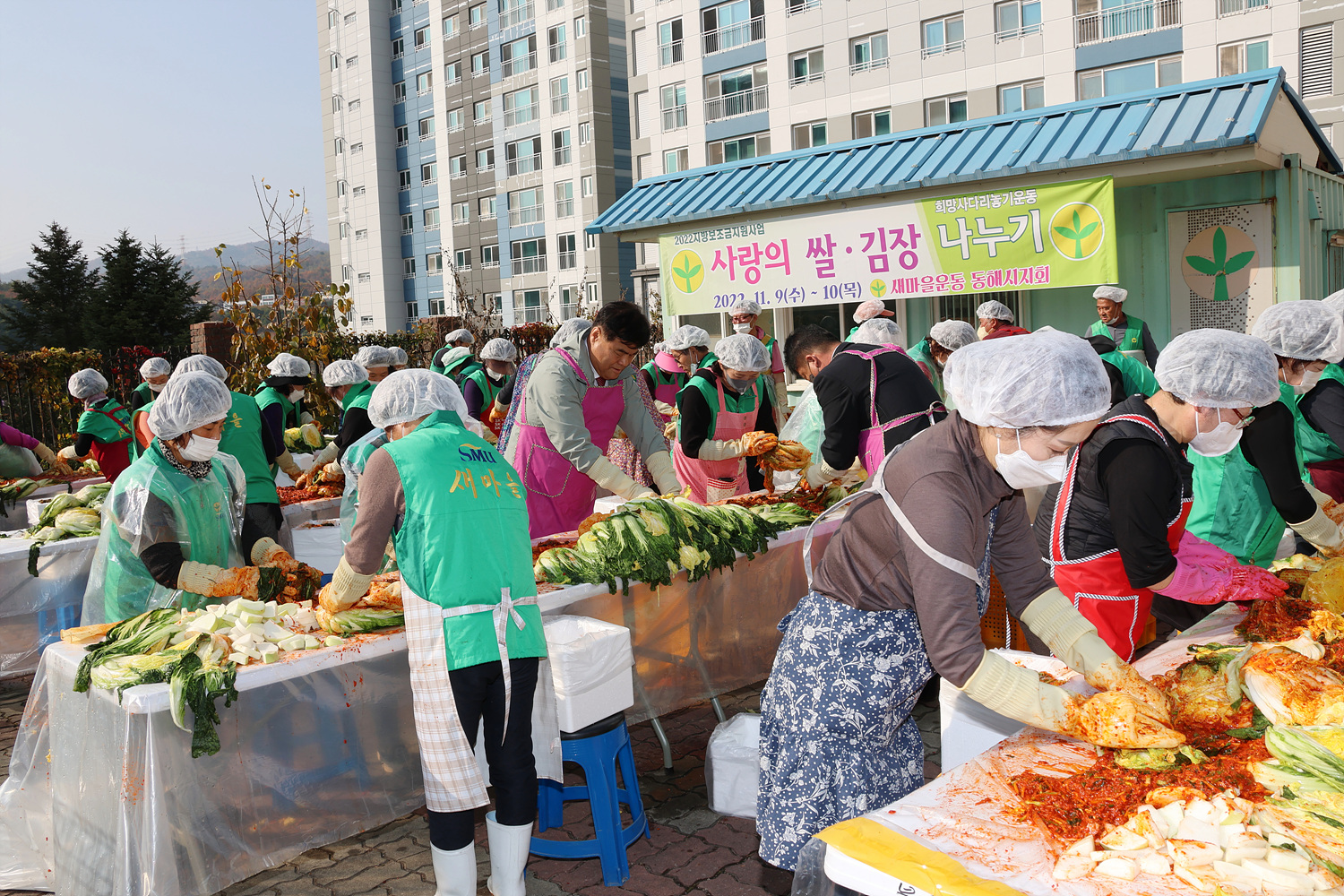 [강원사회복지신문 김종한 기자]=희망의 사다리 놓기! 맛있는 김장나눔 새마을운동 동해시지회 새마을지도자 100여명 참석 새마을운동 동해시지회(지회장 홍순선)가 입동을 맞아 사랑의 쌀·김장 나눔 행사를 지난 11월 9일과 10일 이틀간 동해시새마을지회사무실 앞마당에서 진행했다. 이번 행사는 홍순선 새마을운동 동해시...