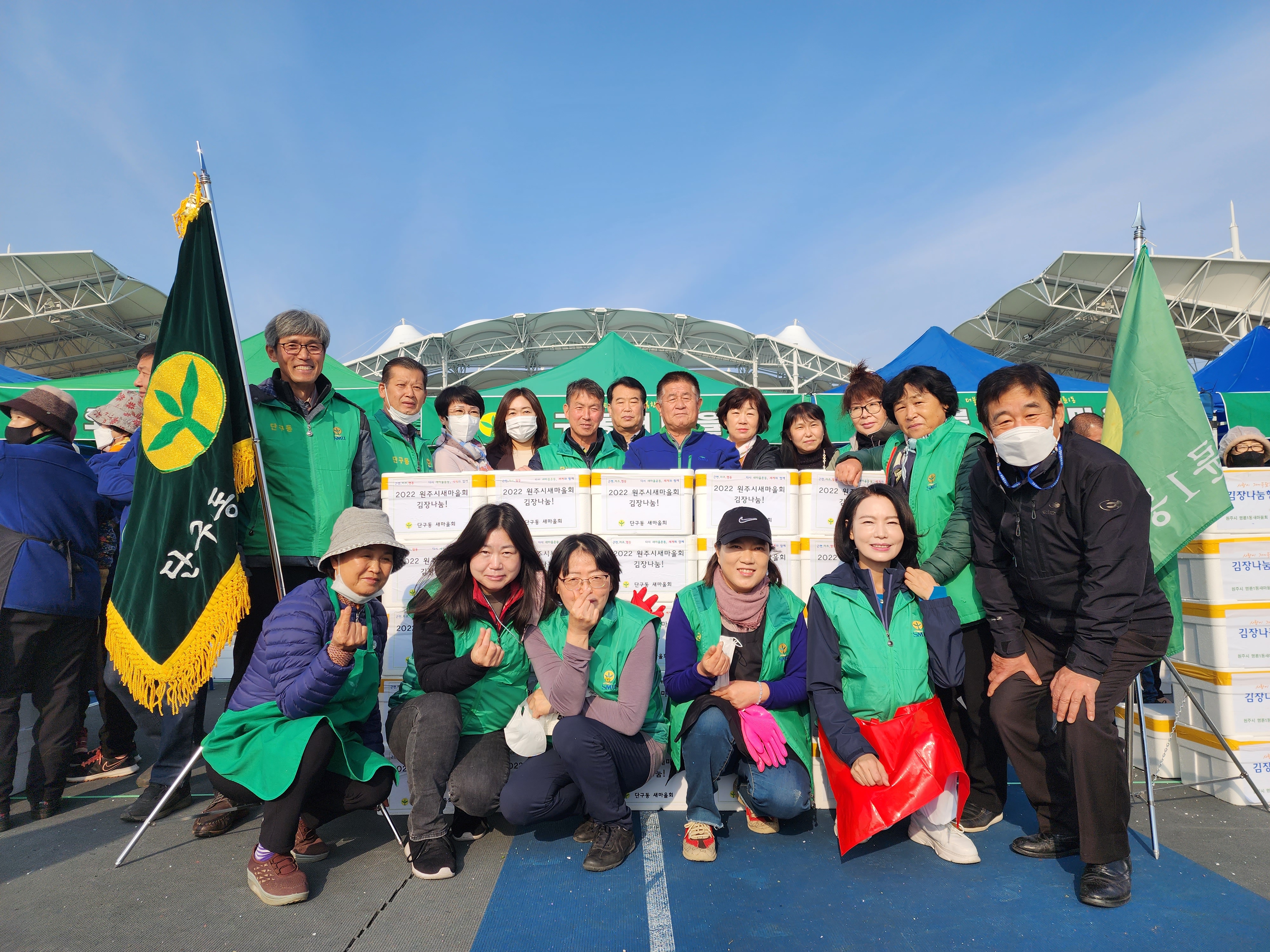 [강원사회복지신문 이정환 기자]='2022 원주시 새마을회 읍면동 동시 김장 담그기' 행사가 지난 11월 9일 젊음의 광장에서 새마을 회원 550여 명이 참석한 가운데 열렸다. 올해로 14회째를 맞는 이번 행사는 코로나19 여파로 3년 만에 재개됐다. 참가자들은 지난 8월 직접 파종한 배추 20,000포기와 무 씨앗 25,000개를 수확...