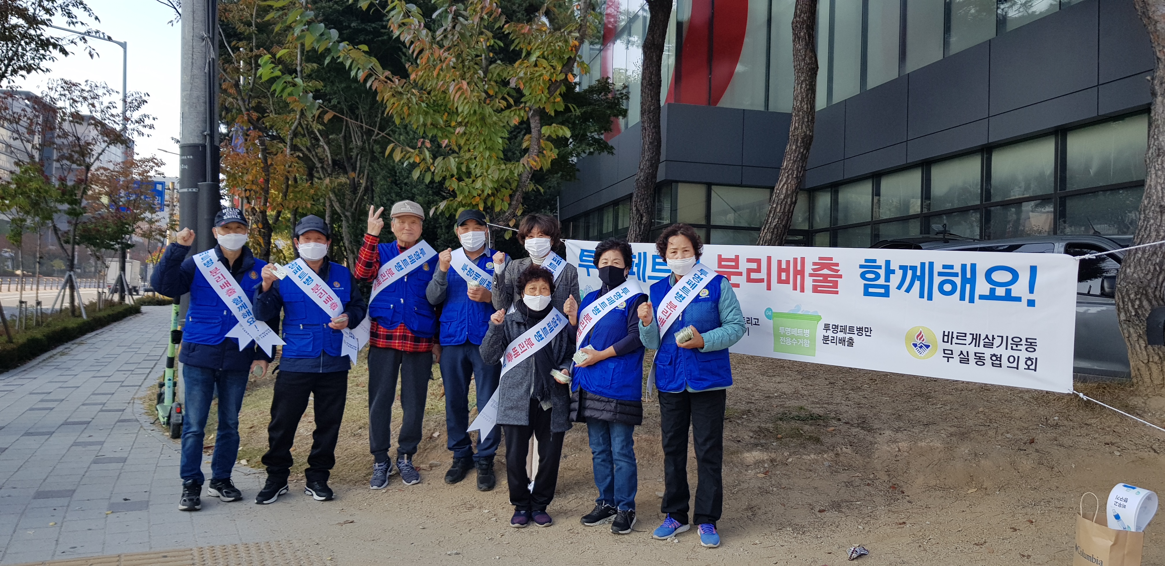 [강원사회복지신문 홍기한 기자]=원주시 무실동 바르게살기운동위원회(위원장 장길성)는 지난 10월 28일 투명페트병 별도 분리배출 캠페인을 전개했다. 주민들의 관심과 참여를 유도하기 위해 원주시 캐릭터 꽁드리와 투명페트병 분리배출 요령을 넣은 라벨 제거기를 자체 제작했다. 이날 위원들은 유동 인구가 많은 시청사거...