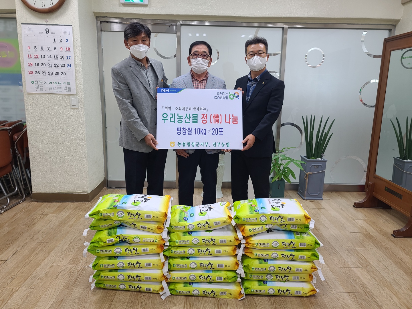 [강원사회복지신문 이정환 기자]=농협평창군지부(지부장 최창순)과 진부농협(조합장 이주한)은 지난 9월 29일(목) 진부농협에서 진부농협 관내 취약계층 대상에 대해 강원농산물 나눔(평창쌀10㎏×20포=200㎏) 행사를 실시했다. 이번 강원농산물 정(情)나눔사업은 도농상생국민운동 본부이 도농상생기금으로 지원되며 진부농...