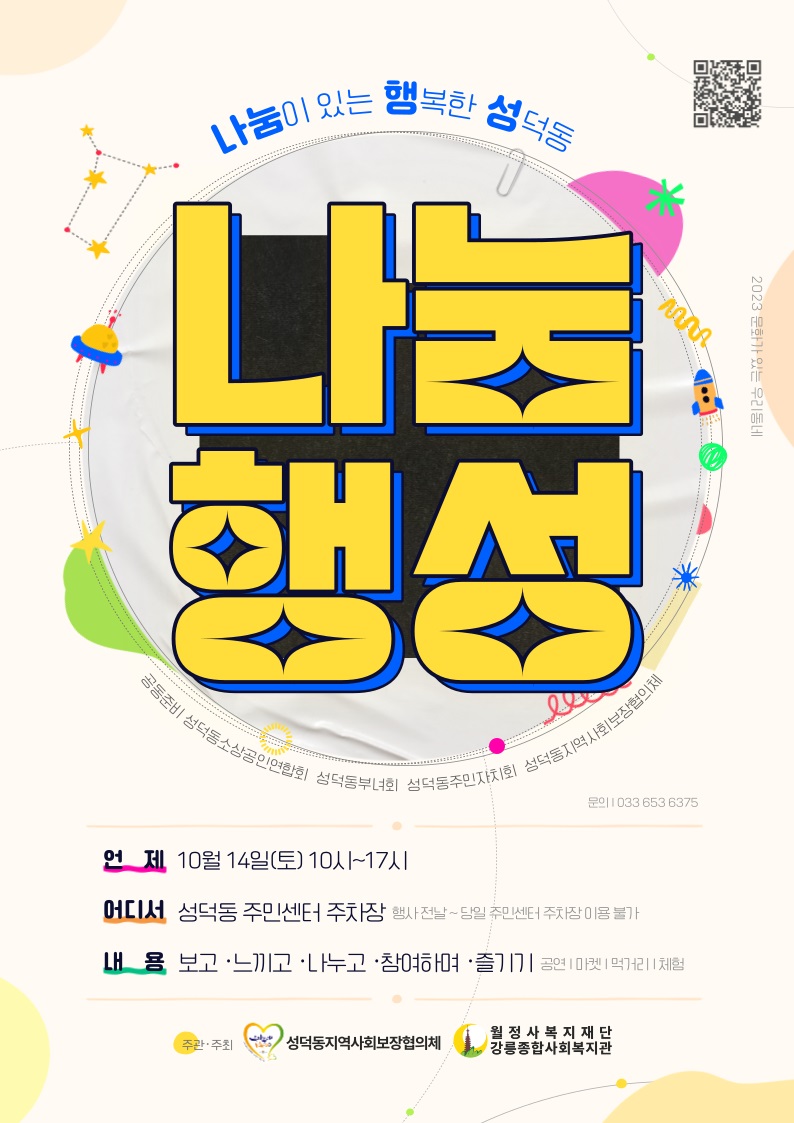 [강원사회복지신문 김종한 기자]=강릉종합사회복지관(관장 류제완)은 지난 10월 14일 강릉시 성덕동주민센터에서 '나눔이 있는 행복한 성덕동'(이하 나눔행사)를 진행하였다. 지역주민의 주도로 기획한 본 행사는 소외되는 주민이 없는 마을 만들기를 목적으로 성덕동주민센터·성덕동지역사회보장협의체 외 유관기관, 소상공...
