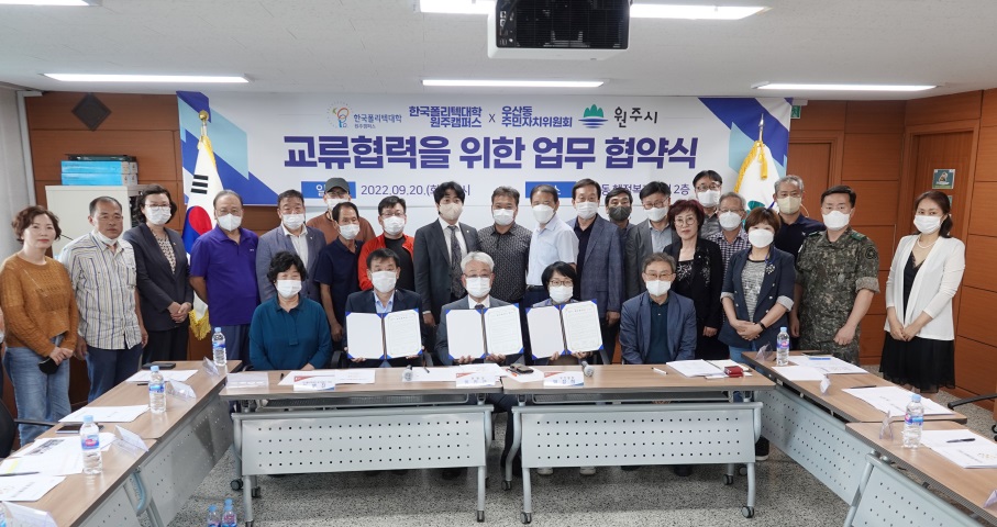 [강원사회복지신문 서은진 기자]=원주시 우산동 행정복지센터는 지난 9월 20일 마을공동체 활성화 및 인력양성 사업 협업을 위한 업무협약식을 개최했다. 협약식에는 우산동 행정복지센터를 비롯해 우산동 주민자치위원회, 한국 폴리텍대학 원주캠퍼스 등 3개 기관이 참여했다. 이번 협약을 통해 세 기관은 교육시설 등 제반...