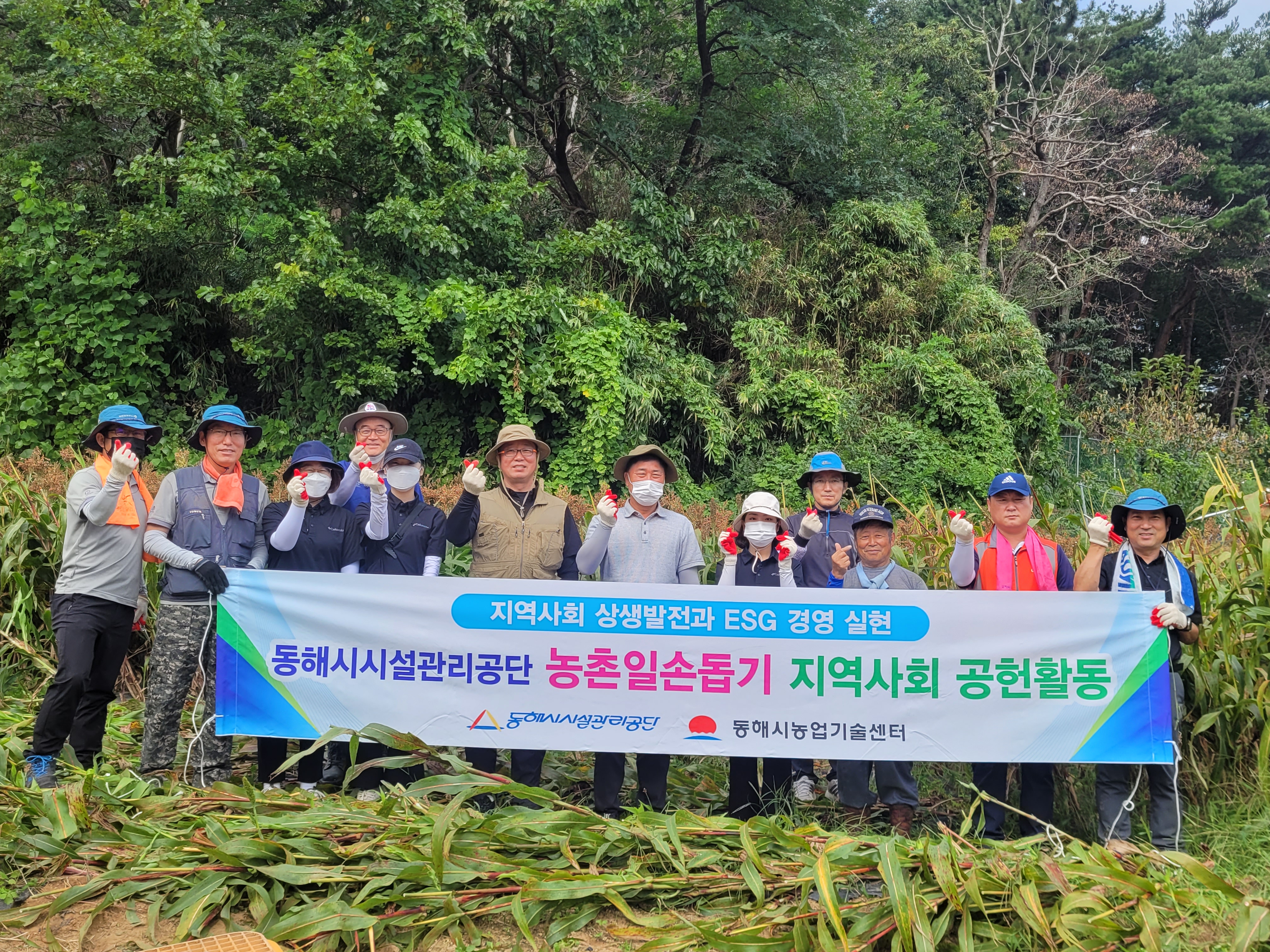 [강원사회복지신문 홍기한 기자]=동해시시설관리공단(이사장 장해주)은 지난 9월 16일 가을철 농번기 일손 부족으로 어려움을 겪고 있는 망상동 심곡마을 농가를 방문하여 잡곡류(수수) 수확 돕기 운동을 펼쳤다. 공단은 농촌 일손 돕기 추진단을 구성, 장해주 이사장이 직접 참여하는 등 임직원이 합심하여 가을철 농촌 일손...