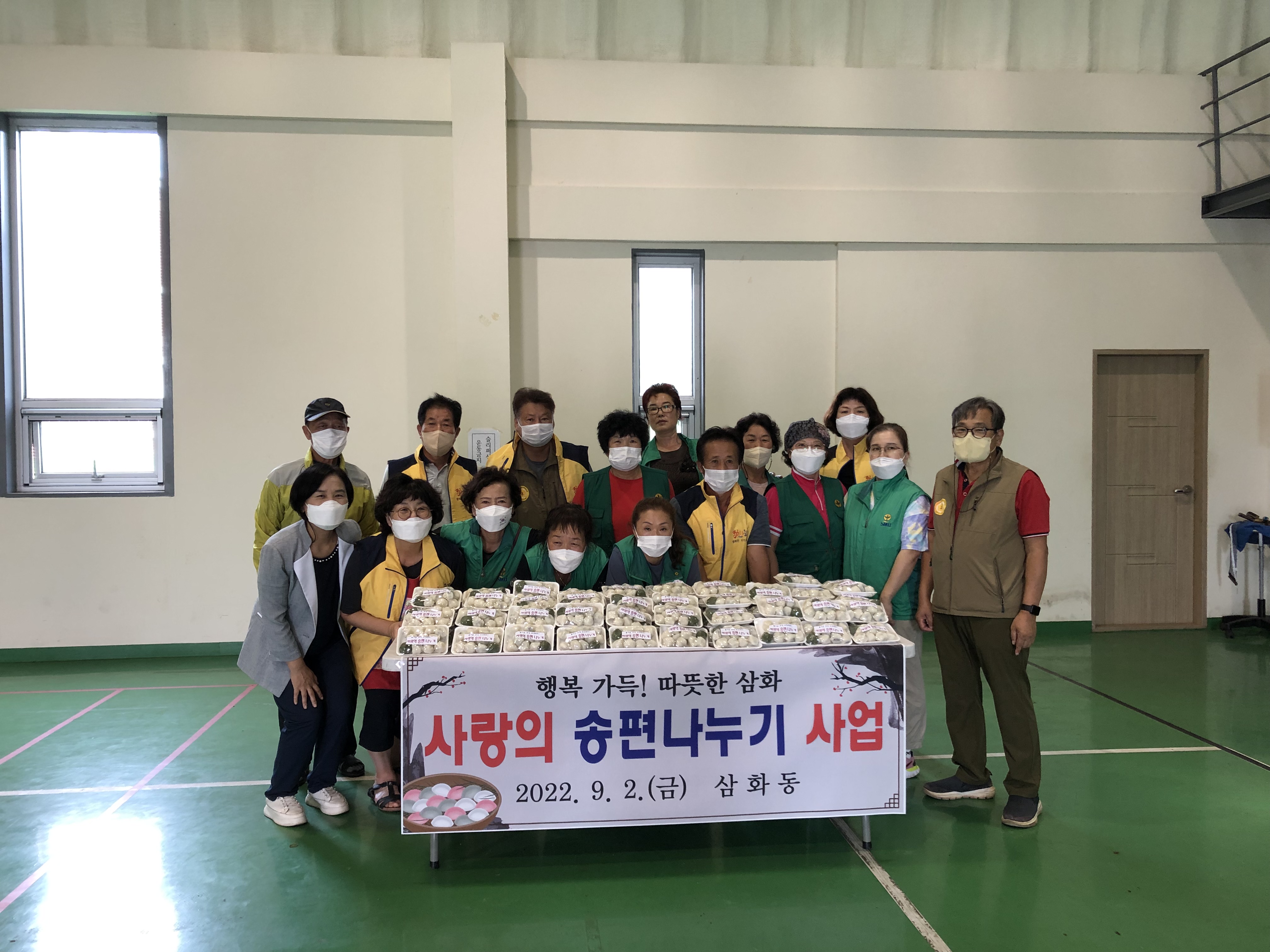 [강원사회복지신문 김종한 기자]=동해시 삼화동(동장 김선옥)은 추석을 맞아 관내 단체와 함께 가족 돌봄에 취약한 150여 가구를 방문하여 '사랑의 송편나누기'사업을 실시했다고 밝혔다. 행사는 삼화동통장협의회(회장 황인옥), 삼화동새마을부녀회(회장 황임수), 삼화동지역사회보장협의체(위원장 이한열) 등 3개 단체가 참...