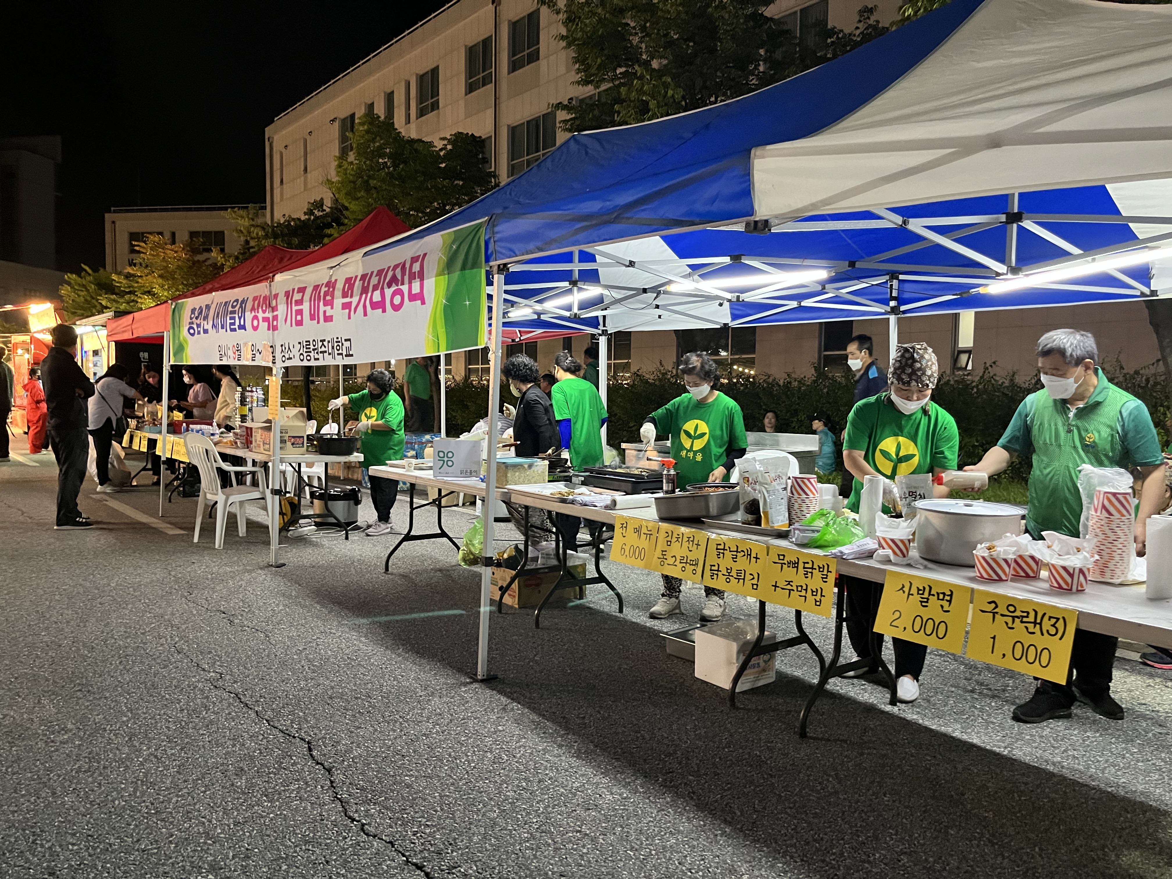 [강원사회복지신문 서은진 기자]=강릉원주대 원주캠퍼스 대동제 참여해 먹거리 등 판매 수익금은 전액 강릉원주대에 장학금으로 기부 원주시 흥업면 새마을회(지도자회장 이종우, 부녀회장 임명희) 회원 20명은 지난 9월 14일부터 15일까지 강릉원주대 원주캠퍼스 대동제에 참가해 장학금 기금 마련 먹거리 장터를 열었다. 이...