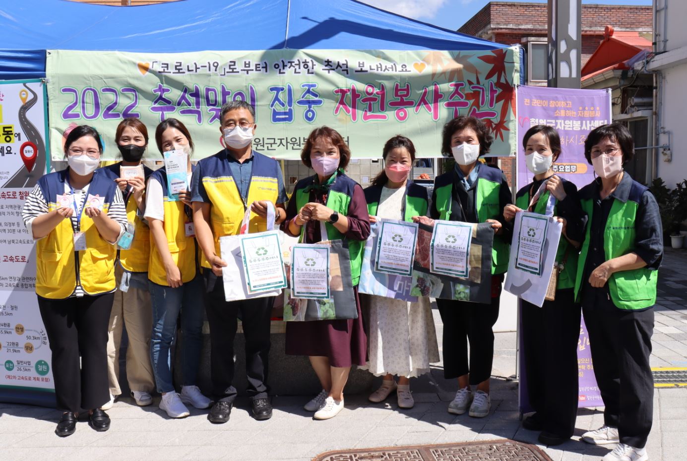 [강원사회복지신문 이정환 기자]=철원군자원봉사센터&둥근달봉사단(회장.함은영)이 지난 9월 8일 신철원전통시장 어울림 한마당에서 홍보 캠페인 봉사활동을 진행했다. 신철원 전통시장을 찾은 모든분들께 둥근달봉사단이 폐현수막으로 만든 재활용 장바구니 200개를 나누어주었다.