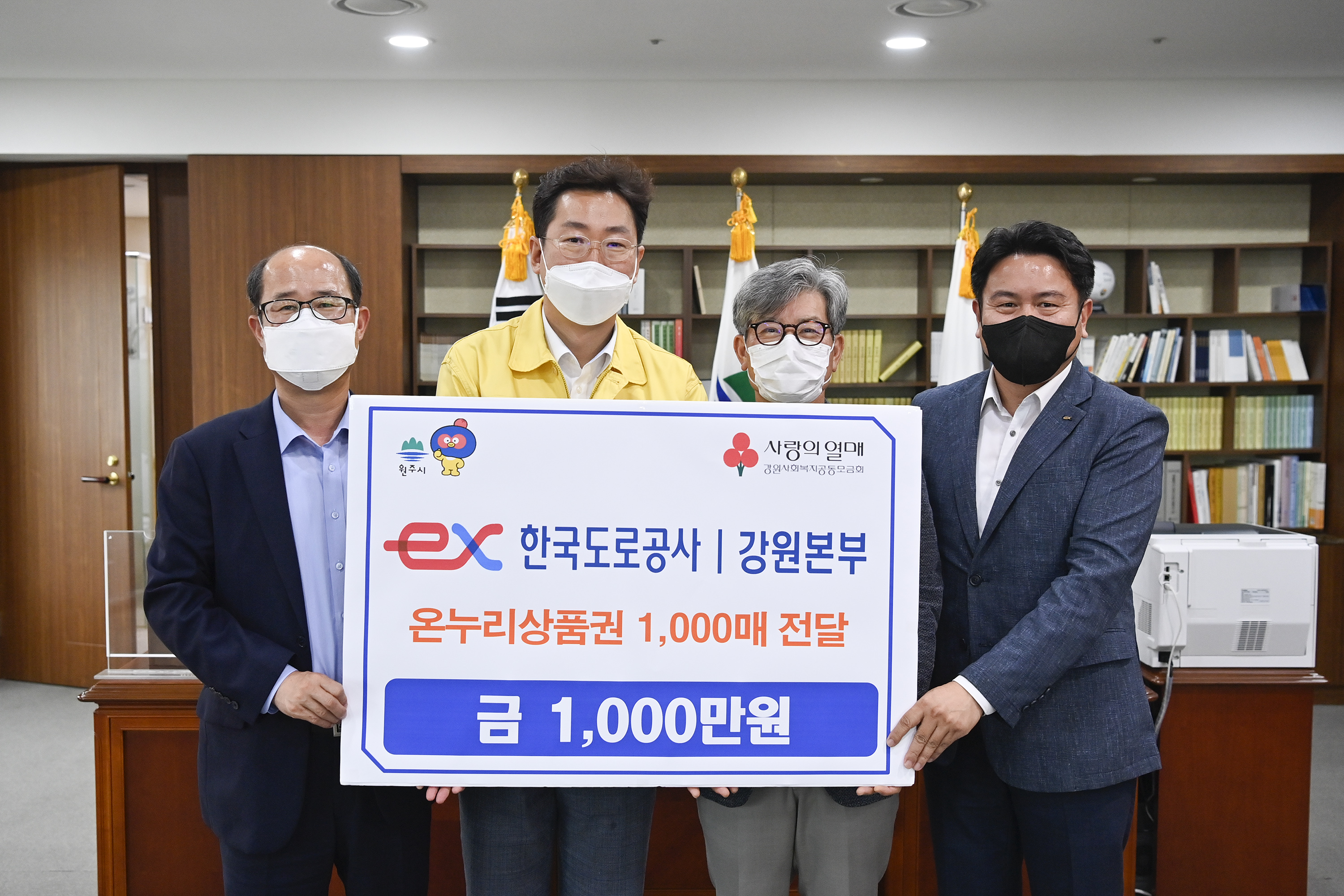 [강원사회복지신문 홍기한 기자]=한국도로공사 강원본부(대표자 김진숙, 본부장 신용석)는 지난 9월 5일 원주시장 집무실을 방문해 원강수 원주시장에게 온누리상품권 1,000만 원을 전달했다. 이날 기탁된 상품권은 원주시 소재 사회복지기관 7개소에 전달될 예정이다. 한국도로공사 강원본부 관계자는 "추석 명절을 앞두고 ...