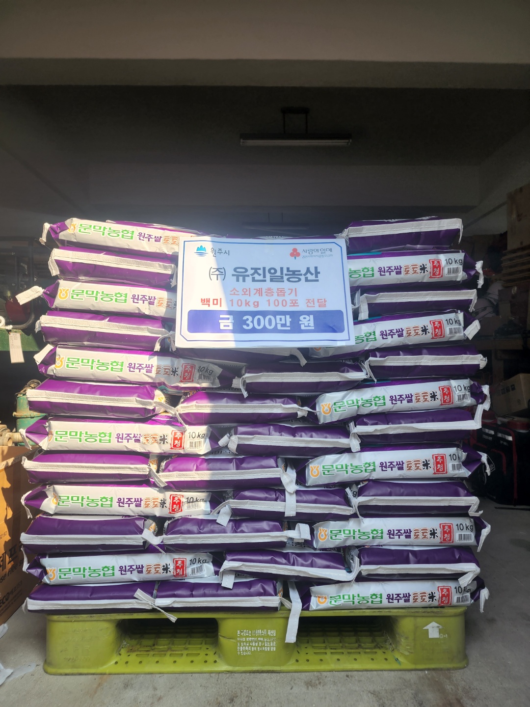 [강원사회복지신문 김도연 기자]=원주시 문막읍 유진일농산(대표 최석만)은 추석을 맞아 관내 저소득가구가따뜻한 명절을 보낼 수 있도록 문막읍 행정복지센터에 3백만 원 상당의 백미 10㎏ 100포를 전달했다. 유진일농산은 지난 2015년부터 매년 문막읍 경로당 및 저소득층을 위해 쌀과 연탄 등을 지속적으로 후원하고 있다...
