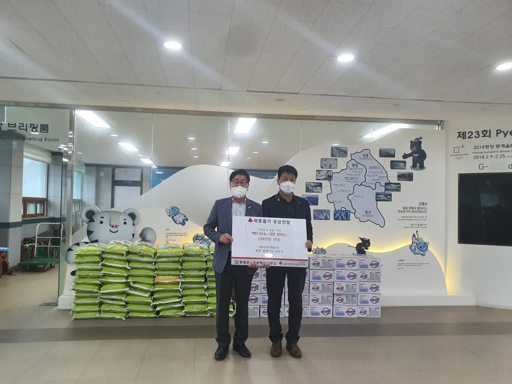 [강원사회복지신문 김종한 기자]=KH강원개발(주) 알펜시아 리조트(대표 방규식)에서 지난 9월 5일 추석명절을 맞이하여 300만원 상당의 이웃돕기 물품(백미10kg 60포, 라면 30박스)을 대관령면사무소에 기탁했다. 이날 기탁된 물품은 관내 저소득 독거노인, 장애인 등 도움이 필요한 취약계층에게 추석 명절 전에 전달될 예정...