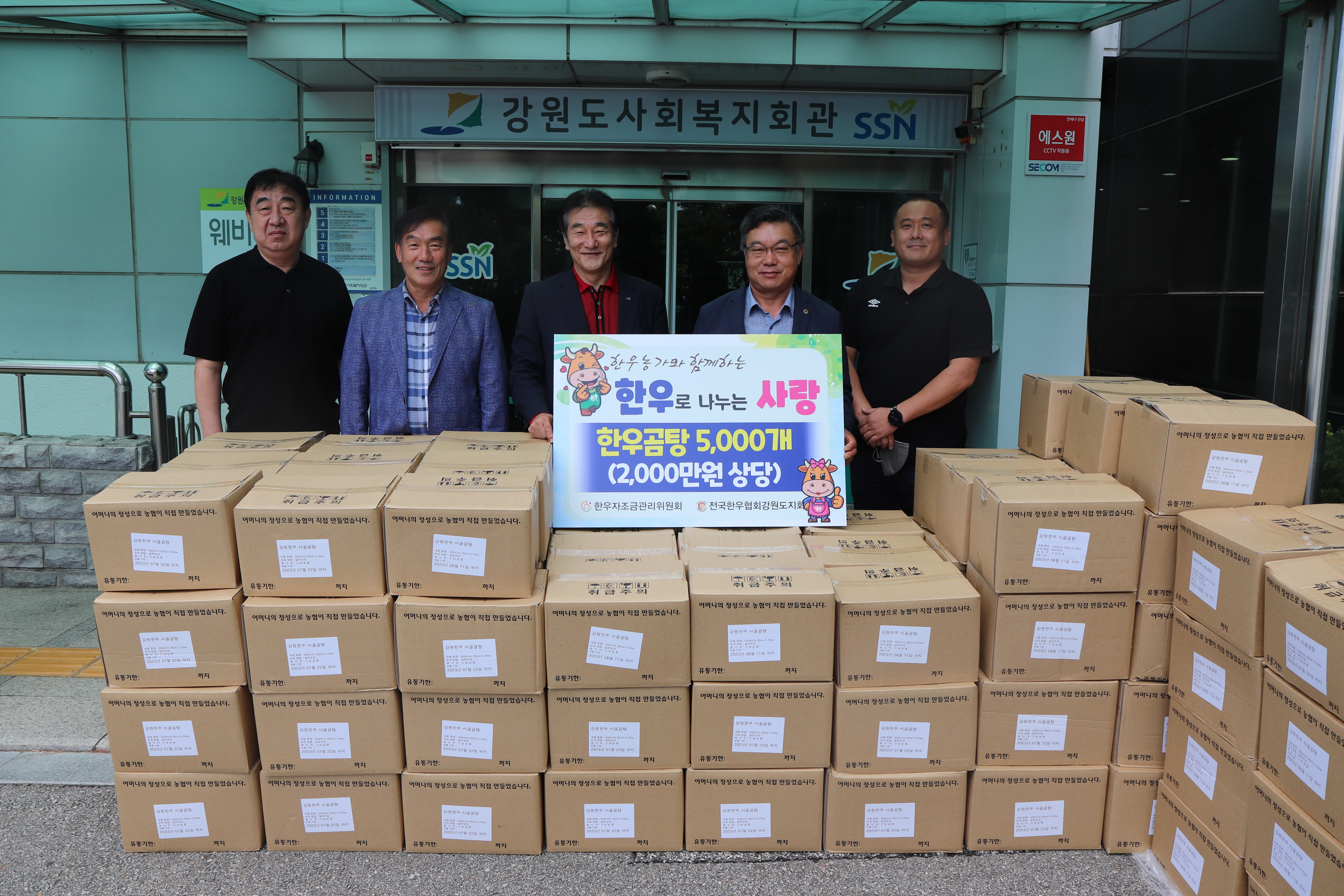 [강원사회복지신문 홍기한 기자]=전국한우협회강원도지회(지회장 박영철)는 지난 9월 1일 오전 11시 강원도사회공헌정보센터(센터장 홍기종)에 한우곰탕(5,000개 / 20,000천원 상당)을 기탁하여 강원도사회복지회관에서 전달식을 가졌다. 이날 전국한우협회강원도지회에서 기탁한 한우곰탕(5,000개)은 추석 명절을 맞이하여 ...