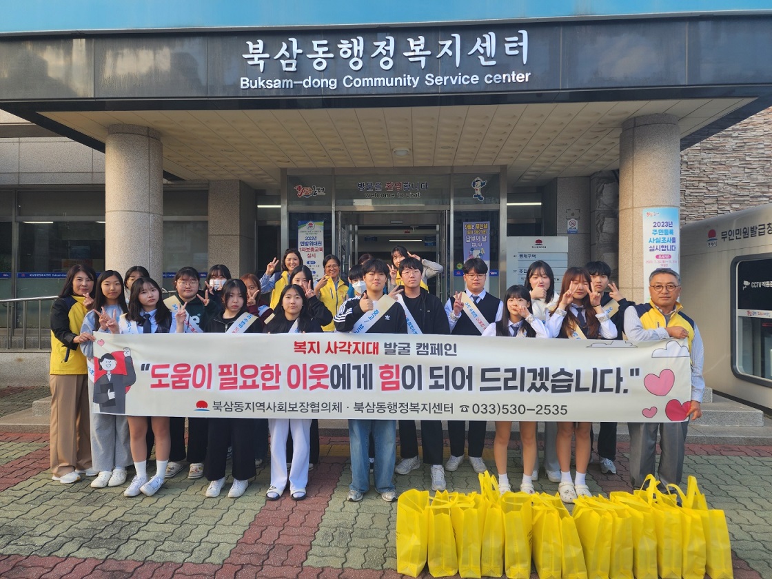 [강원사회복지신문 홍기한 기자]=동해시 북삼동지역사회보장협의체, 광희고등학교 한빛봉사단 등 30여 명 참여 동해시 북삼동 지역사회보장협의체(민간위원장 한명희, 공공위원장 황복순)는 지난 10월 11일 도움이 필요한 이웃 및 위기가정 발굴을 위한 홍보 캠페인을 개최했다. 이번 홍보 캠페인은 잠재적 복지사각지대와 긴...