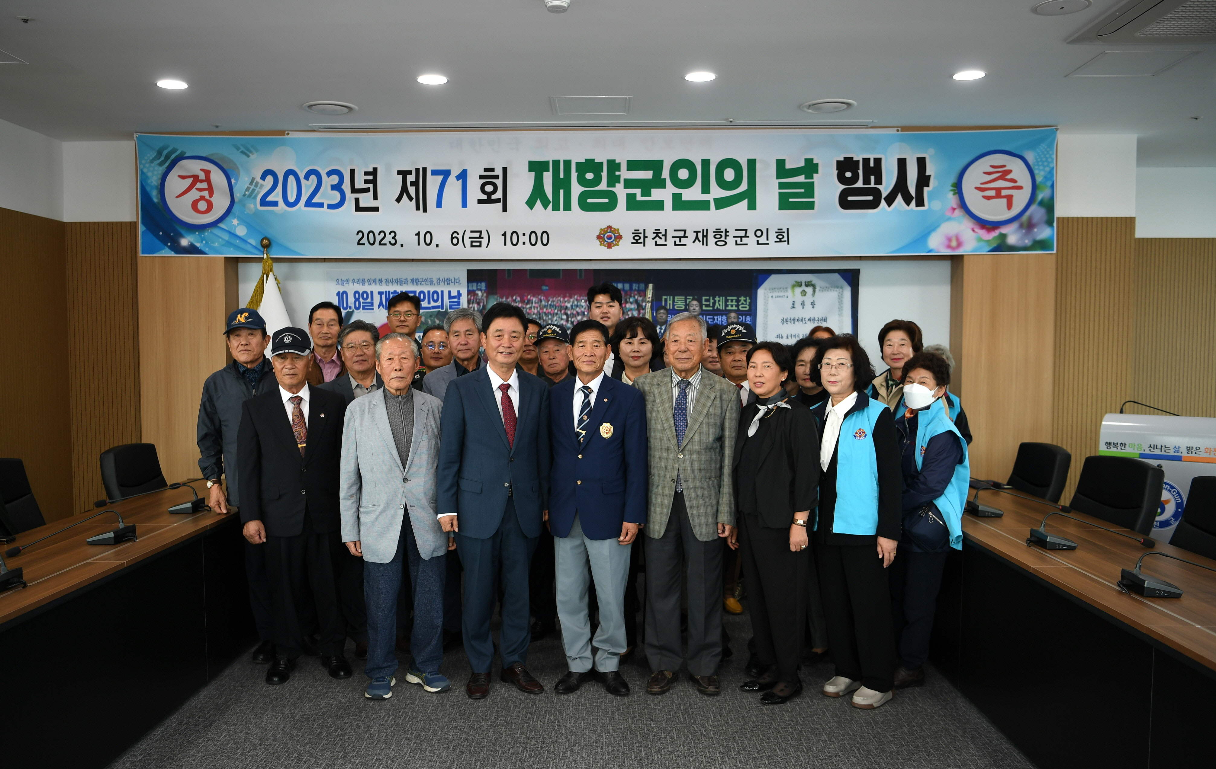 [강원사회복지신문 이정환 기자]=제71회 재향군인의 날 기념행사가 지난 10월 6일 화천국민문화체육센터에서 김덕희 화천군 재향군인회장, 최문순 군수를 비롯해 보훈단체장과 재향군인회원들이 참석한 가운데 열렸다.