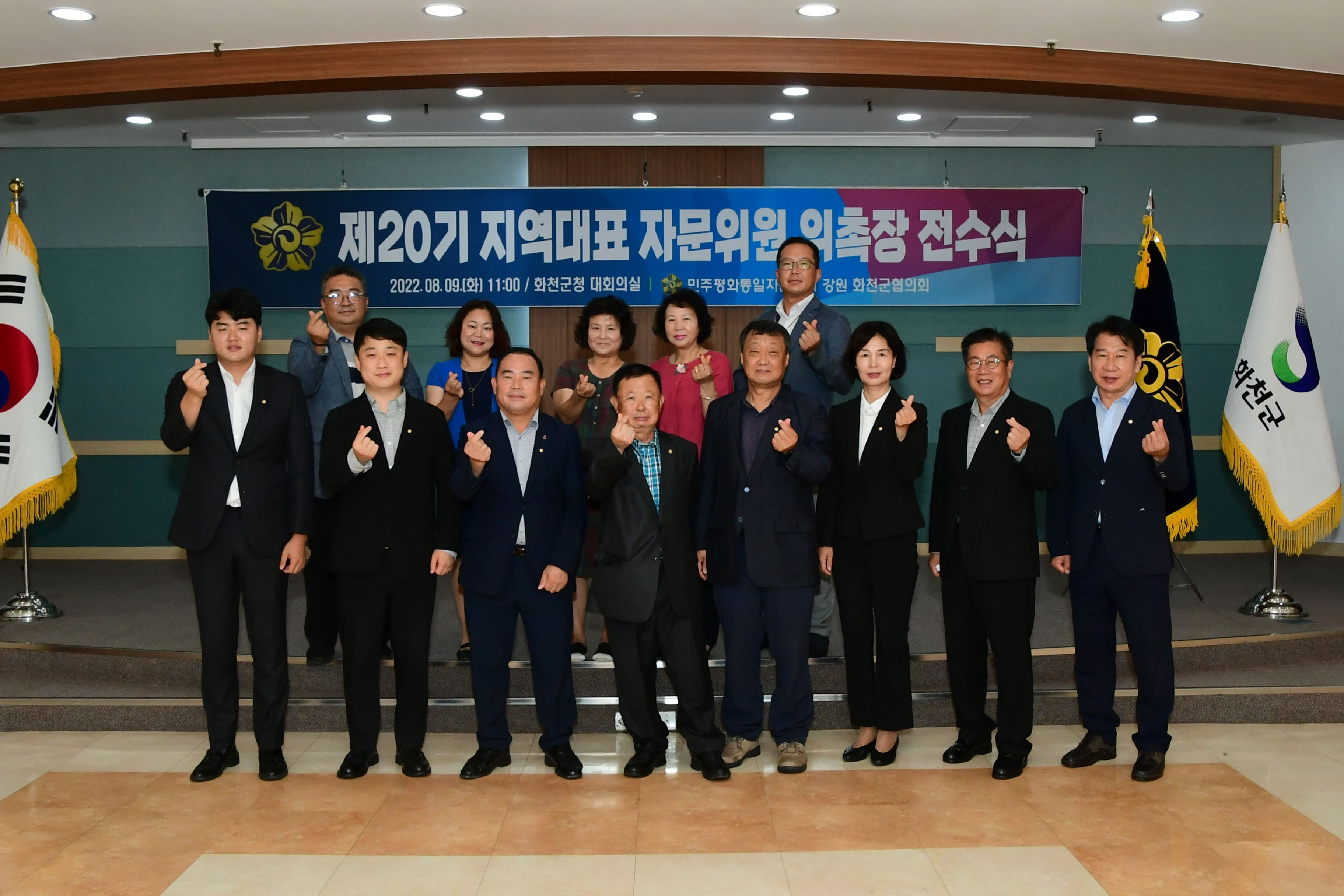 [강원사회복지신문 김종한 기자]=제20기 민주평화통일자문회의 자문위원 위촉장 전수식이 지난 8월 9일 화천군청에서 노이업 군의장, 박대현 도의원을 비롯해 군의원들과 위촉 자문위원들 참석한 가운데 열렸다.