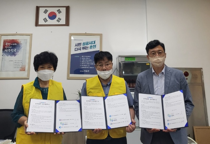 [강원사회복지신문 서은진 기자]=춘천시 후평2동행정복지센터(동장:이태순)와 후평2동지역사회보장협의체(위원장:박정임)는 지난 8월 9일 '선한이웃 마을돌봄 프로젝트 추진'을 위해 농업회사법인 유한회사 비와이(대표 추풍년·사장 임현태)와 함께 업무협약을 맺었다.