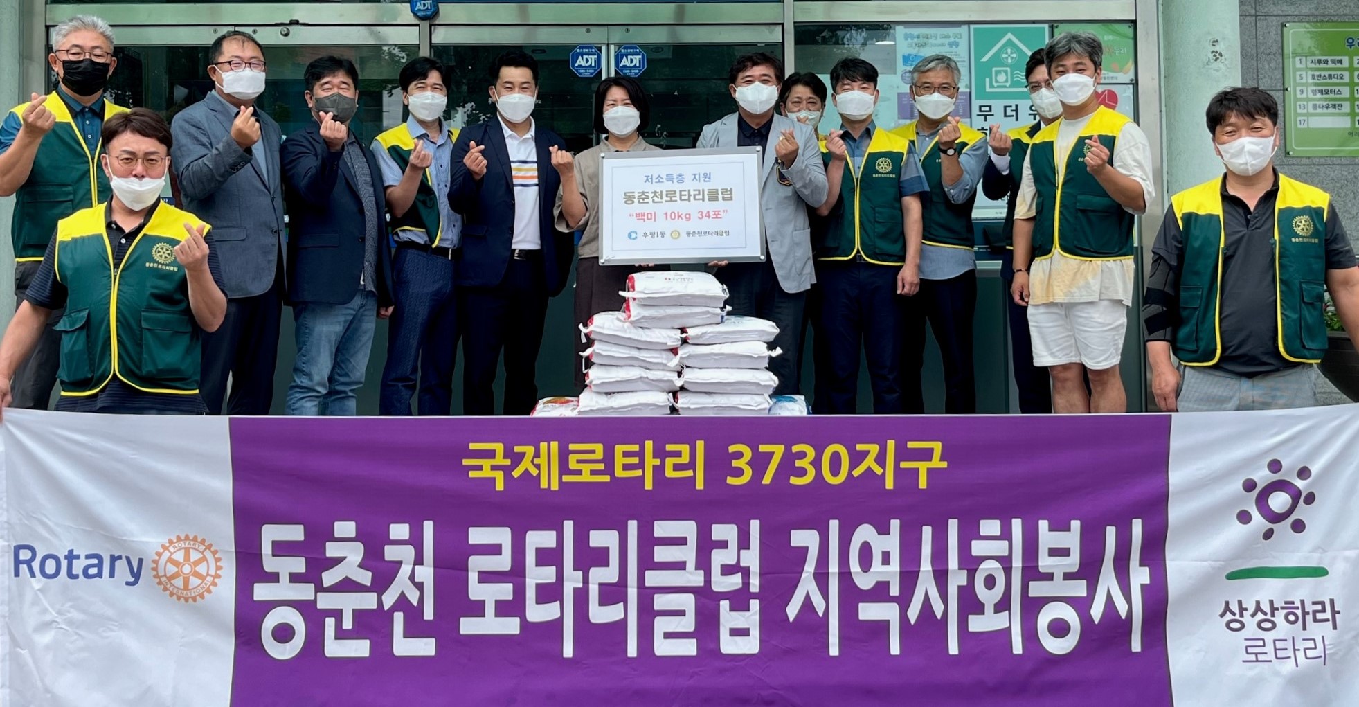 [강원사회복지신문 서은진 기자]=동춘천로타리클럽(대표 김종영)은 지난 8월 11일 춘천시 후평1동행정복지센터를 방문해 백미(10kg) 34포를 기탁했다.