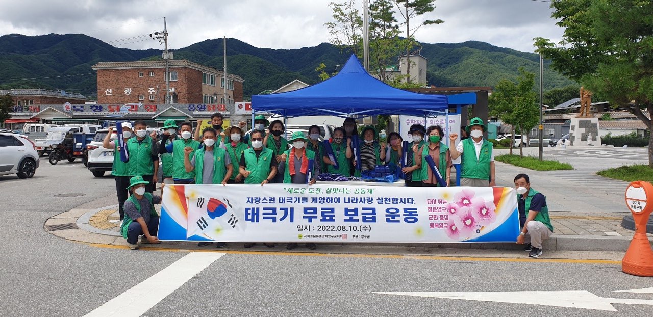 [강원사회복지신문 이정환 기자]=태극기 무료 배부, 태극기 달기 홍보 운동 양구군새마을회(회장 김영환)는 지난 8월 10일(수) 12시부터 제77주년 광복절을 맞아 태극기 달기 캠페인을 진행했다. 태극기 달기 캠페인은 양구 5일장터 일원에서 지역주민을 대상으로 광복절 태극기 달기 홍보 운동과 함께 태극기를 무료로 나누...