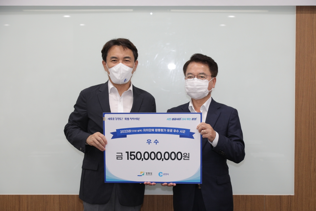 [강원사회복지신문 이정환 기자]=8월 10일 강원도지사 초도방문 및 시상식 진행 우수기관 표창 및 재정인센티브 1억5천만 원 지급 춘천시가 2022년 지방자치단체 합동평가 강원도 우수기관에 선정됐다. 시상은 지난 8월 10일 민선 8기 원팀 비전공유를 위해 춘천시를 방문한 김진태 도지사가 육동한 시장에게 직접 전달했다....