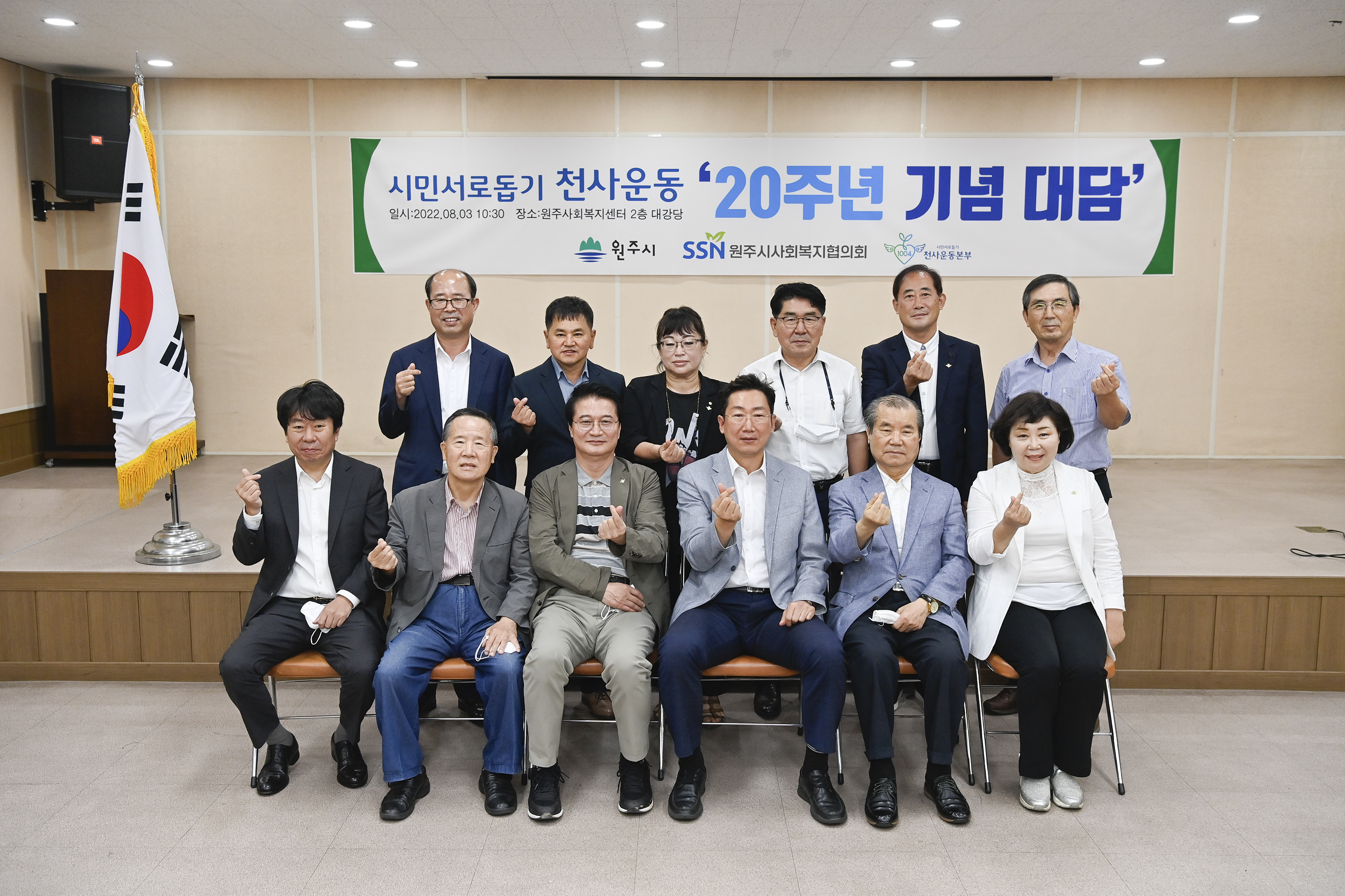 [강원사회복지신문 서은진 기자]=지난 8월 3일 오전 10시 30분 원주시사회복지센터 2층 강당 전·현직 원주시장, 시 사회복지협의회 초대회장, 천사운동 유공자 등 참석 원주시는 시민서로돕기 천사운동 20주년을 맞아 '시민서로돕기 천사운동 20주년 기념 대담'을 지난 8월 3일 오전 10시 30분 원주시사회복지센터 2층 강당...