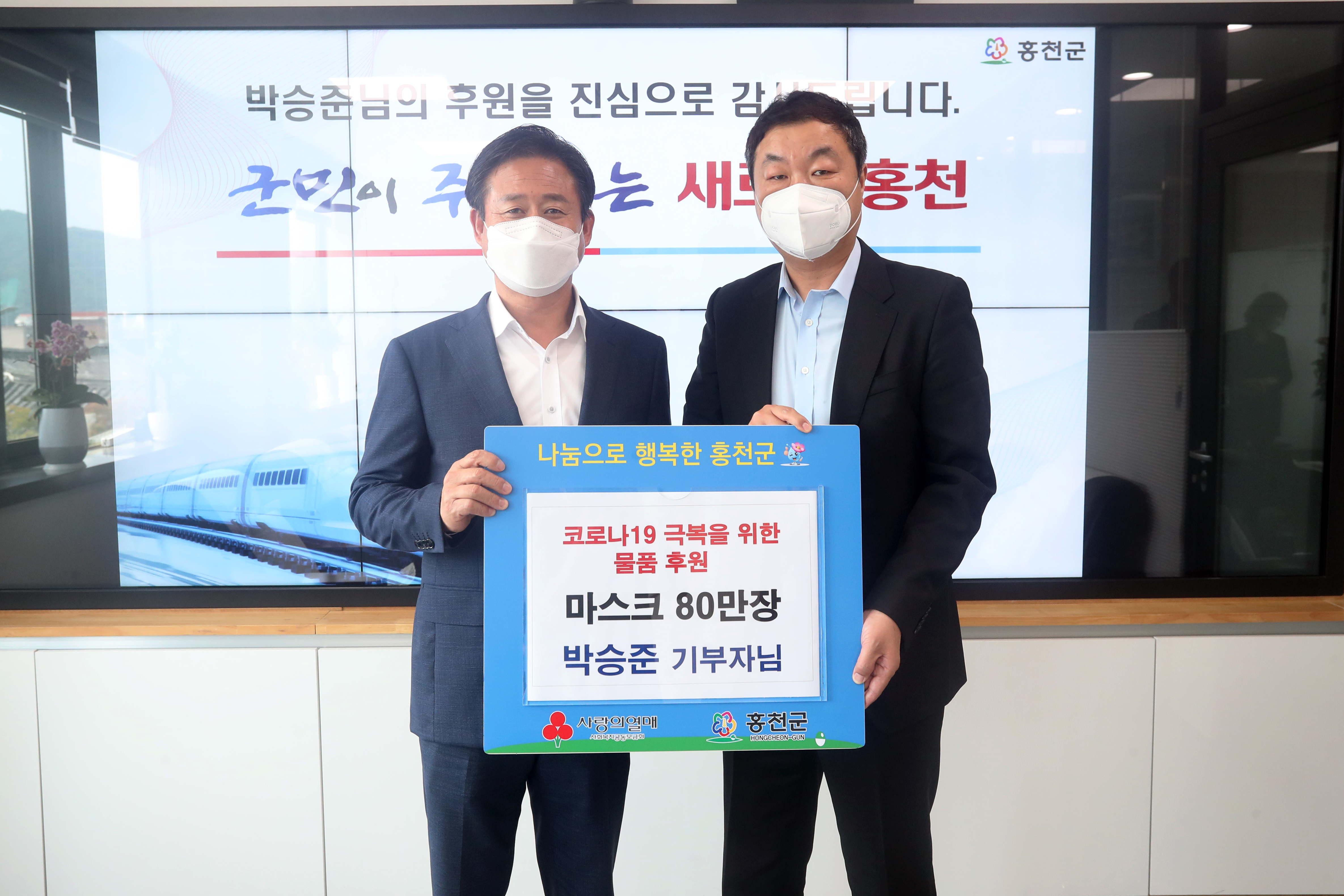 [강원사회복지신문 홍기한 기자]=고향이 홍천인 출향민 박승준씨는 지난 8월 4일 홍천군청을 방문, 코로나19 극복을 희망하며 마스크 80만장을 전달했다. 박승준씨는 "코로나19가 재유행하고 있어 홍천군민들에게 무엇을 할 것인가를 고민하다가 마스크를 기부하게 됐다"며 "하루 빨리 코로나19가 종식되어 군민 모두가 행복...