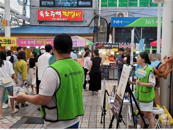 [강원사회복지신문 이정환 기자]=탄소는 줄이고! 환경은 살리고! 철원군자원봉사센터(센터장 진익태) 센터직원들은 지난 8월 4일 뜨거운 열기가 가득한 다슬기 축제장에서 탄소중립 캠페인 홍보 활동을 진행했다. 캠페인 안내를 통해 철원군민들의 환경과 탄소중립에 대한 관심과 참여를 독려했다.