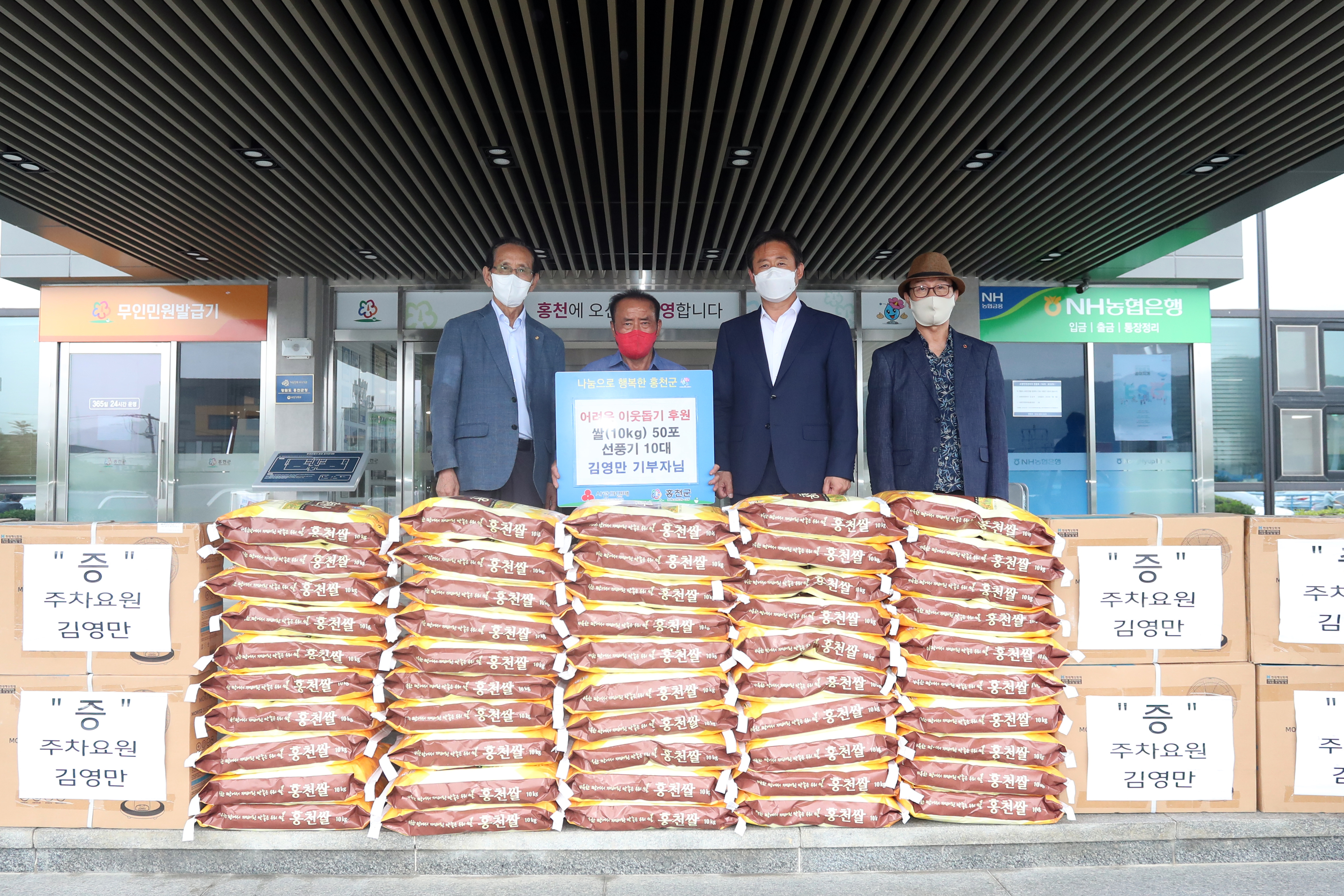 [강원사회복지신문 홍기한 기자]=홍천군 홍천읍 주민 김영만씨는 지난 8월 2일 홍천군청을 방문, 어려운 이웃돕기 후원물품으로 쌀 50포(1포 10kg)와 선풍기 10대를 전달했다. 후원물품은 노인회에 전달될 예정이다. 김영만씨는 "지난 1월 쌀을 기부하며 나눔의 행복을 알게 됐다”며 “더운 여름날 이웃에게 조금이나마 도움...