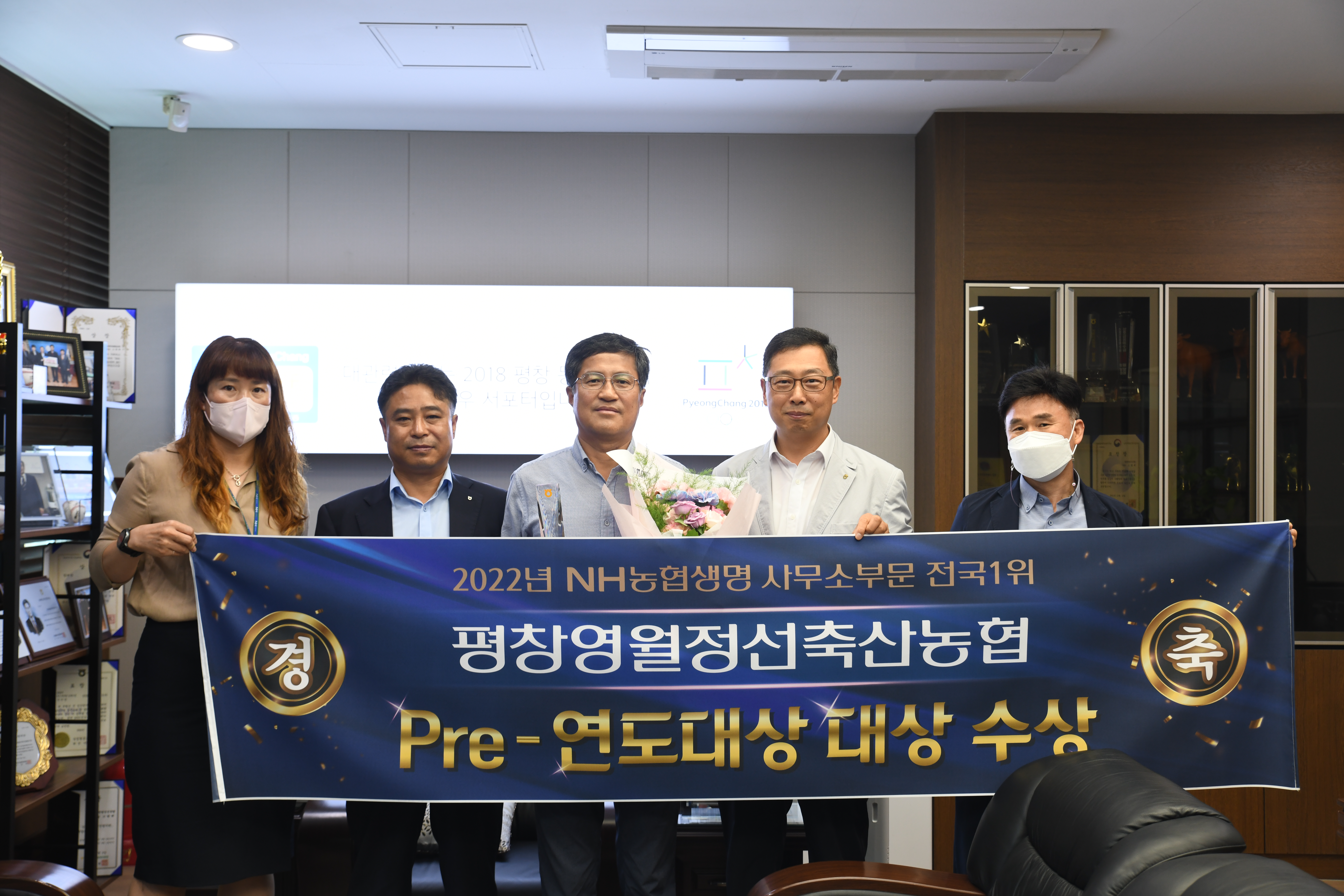 [강원사회복지신문 이정환 기자]=평창영월정선축협(조합장 고광배)은 지난 8월 2일 오전 11시, 본점 2층 조합장실에서 NH농협생명에서 실시한 '2022년 Pre-연도대상' 사무소부분 대상 시상식을 가졌다. '2022년 Pre-연도대상 캠페인'은 NH농협생명이 1월부터 3월까지 전국의 1천여개 농협을 25개 그룹으로 나누어 보장성보험...