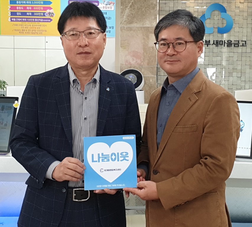 [강원사회복지신문 김도연 기자]=춘천시 퇴계동 행정복지센터(동장 이우찬)는 지난 10월 6일 저소득층을 위한 양곡(270만원상당)을 후원한 춘천남부새마을금고(이사장 정용현)를 방문해 퇴계동 나눔이웃 현판(퇴계동 5호)을 전달했다.