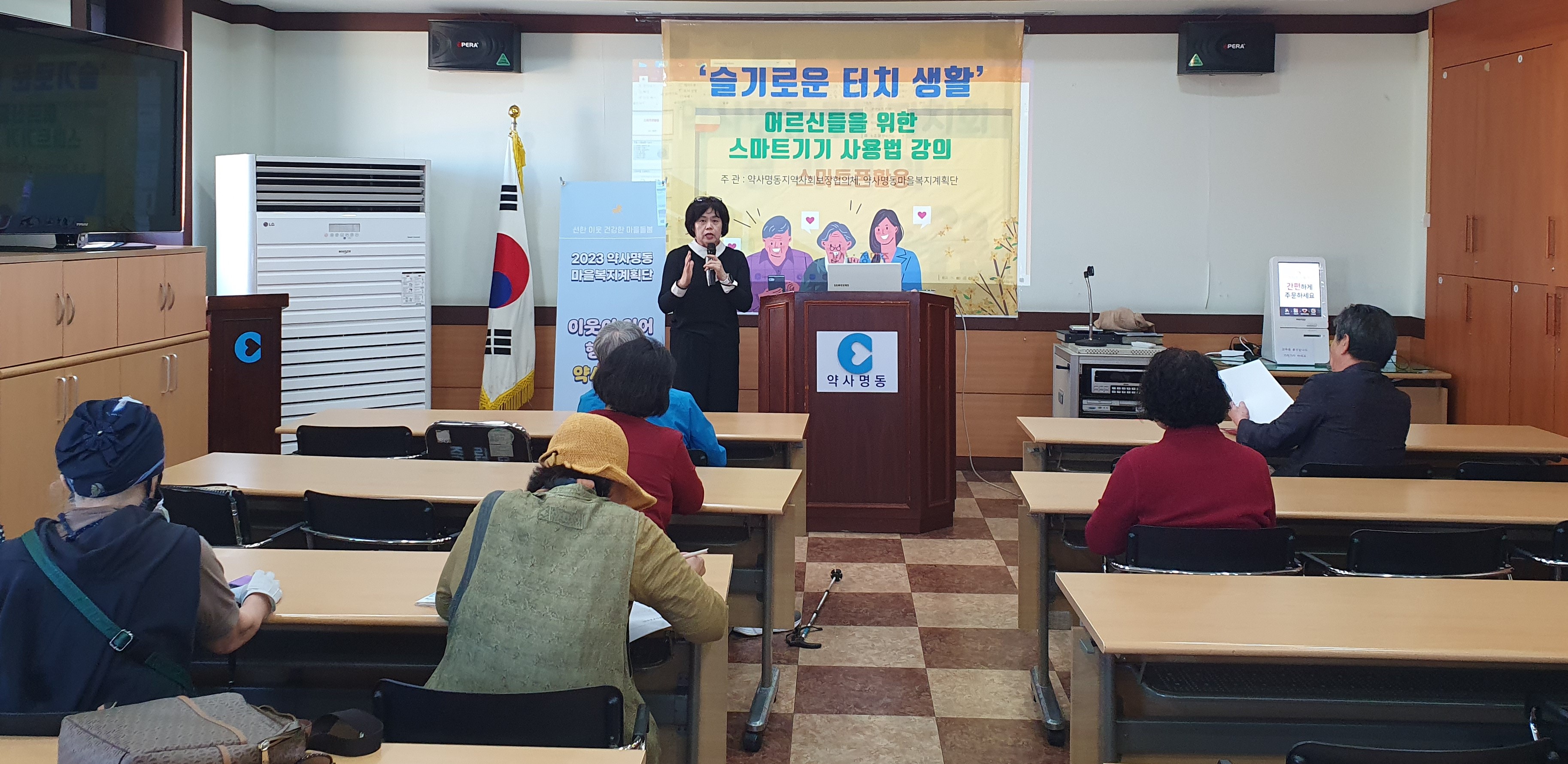 [강원사회복지신문 서은진 기자]=춘천시 약사명동마을복지계획단은 지난 10월 5일 약사명동행정복지센터에서 중장년층 대상 스마트 기기 강의를 했다. 약사명동마을복지계획단의 마을복지 의제 '슬기로운 터치생활'(중장년층 스마트기기 강의) 10월 5일부터 10월 27일까지 매주 목,금 총 8회기를 실시한다.