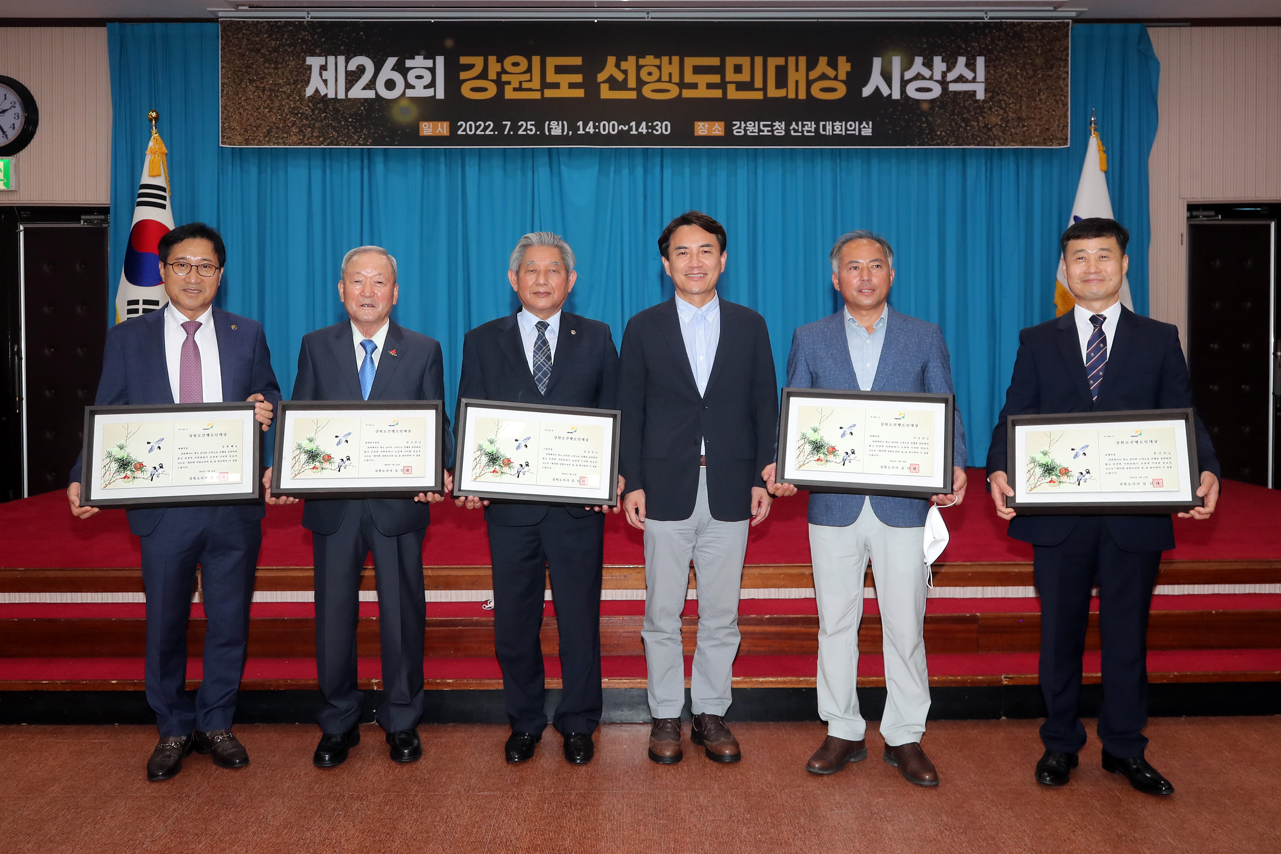 [강원사회복지신문 홍기한 기자]=임기수씨 등 5명 강원도 선행도민대상 수상 강원도는 지난 7월 25일(월) 강원도청 신관 대회의실에서 '제26회 강원도 선행도민대상' 시상식을 개최했다. 각 부문별 수상자는 친절봉사 부문에 임기수(80세·남)씨, 근검 부문에 김승은(72세·남)씨, 효행부문에 홍기수(48세·남)씨, 의행부문에...
