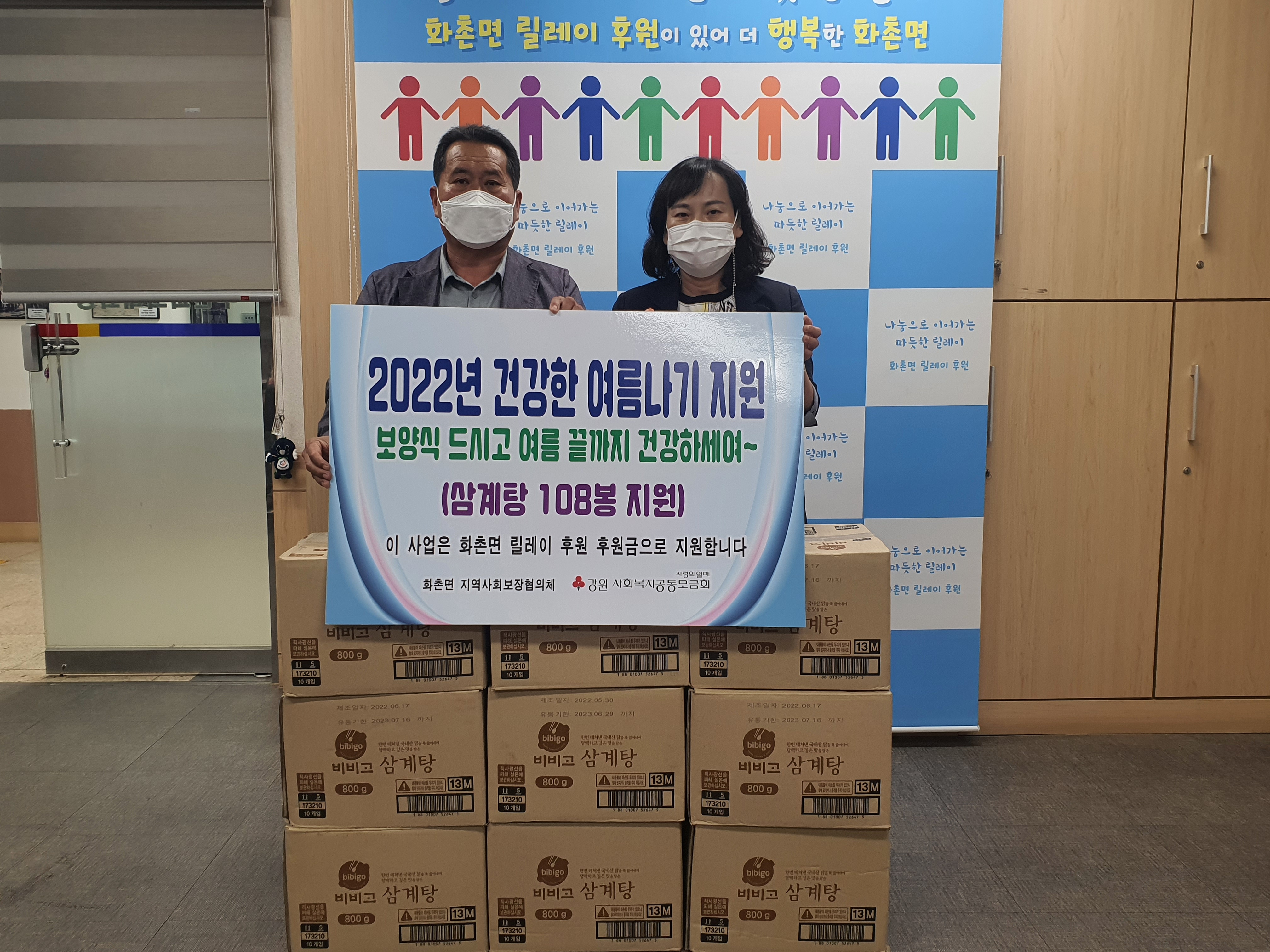 [강원사회복지신문 서은진 기자]=홍천군 화촌면 지역사회보장협의체(공공위원장 허은숙, 민간위원장 강은수)는 지난 8월 1일 화촌면 행정복지센터에서 삼계탕 108마리를 전달하는 '건강한 여름나기 물품 지원 사업' 전달식을 개최했다. 삼계탕은 '건강한 여름나기 물품 지원 사업'을 통해 발굴된 홀몸 어르신과 취약계층 등 ...