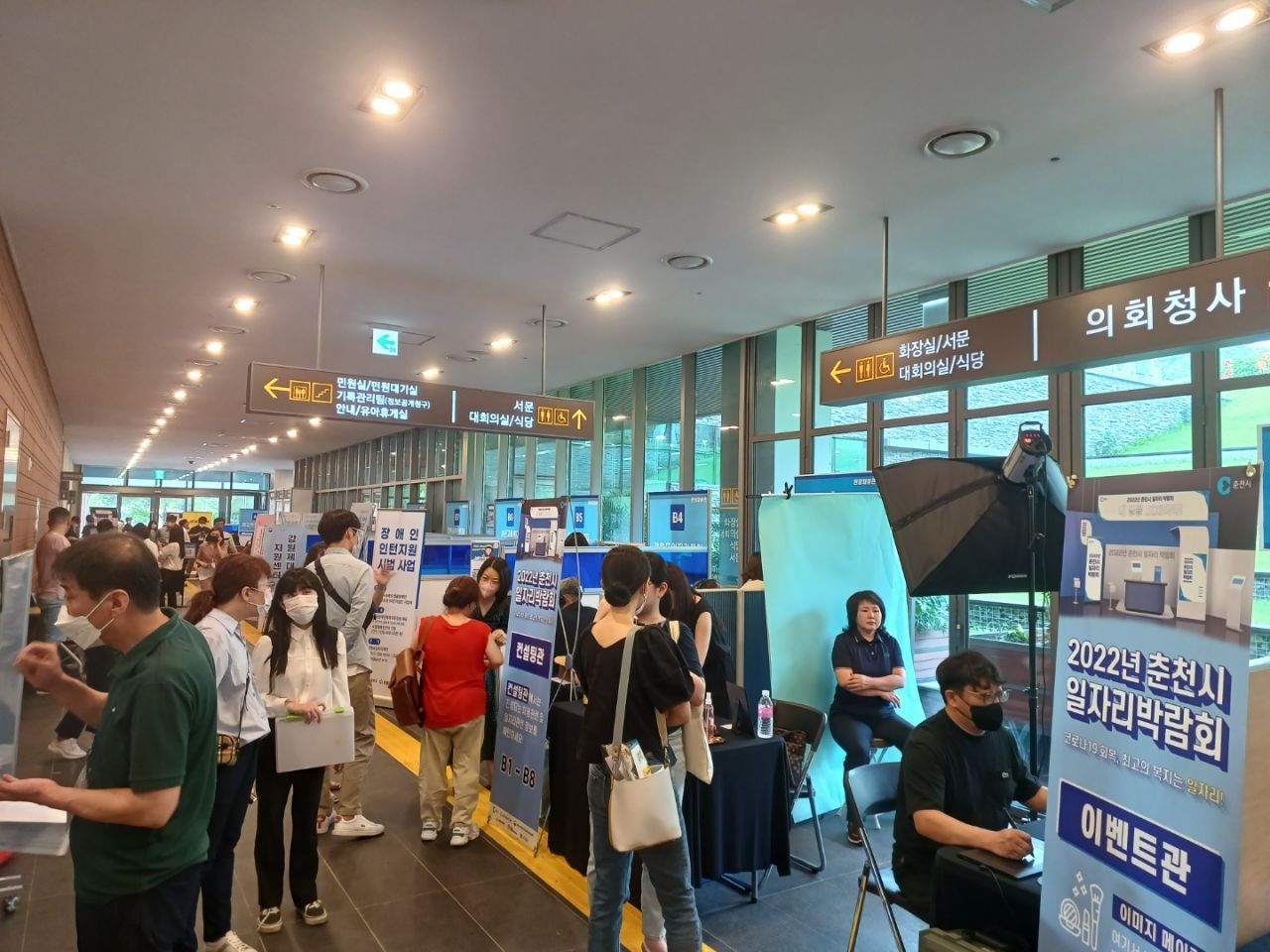 [강원사회복지신문 서은진 기자]=27개 기업과 유관기관 및 청년, 여성, 중장년 등 취업 희망자 500여명 참여 지난 7월 27일 춘천시청 1층 로비에서 진행, 현장면접 및 다양한 부대행사 마련 춘천시는 코로나19 여파에 따른 고용위기를 극복하고 구인·구직자 만남의 장을 마련하고자 2022년 춘천시 일자리 박람회를 지난 7월...