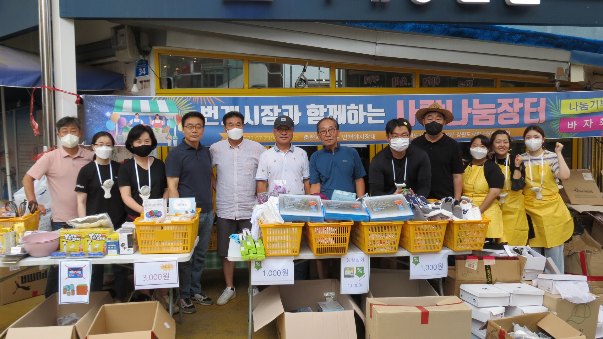 [강원사회복지신문 서은진 기자]=강원도사회공헌정보센터(센터장 홍기종)은 지난 7월 23일(토) 17:00에 춘천시 소양로 번개시장 내에서 '번개시장과 함께하는 사랑나눔장터 바자회'를 개최했다. 본 바자회는 2014년부터 현재까지 매년 시행한 바, 지역사회와의 상생을 위한 나눔 활동과 사회공헌 기금 마련을 위해 진행되었으...