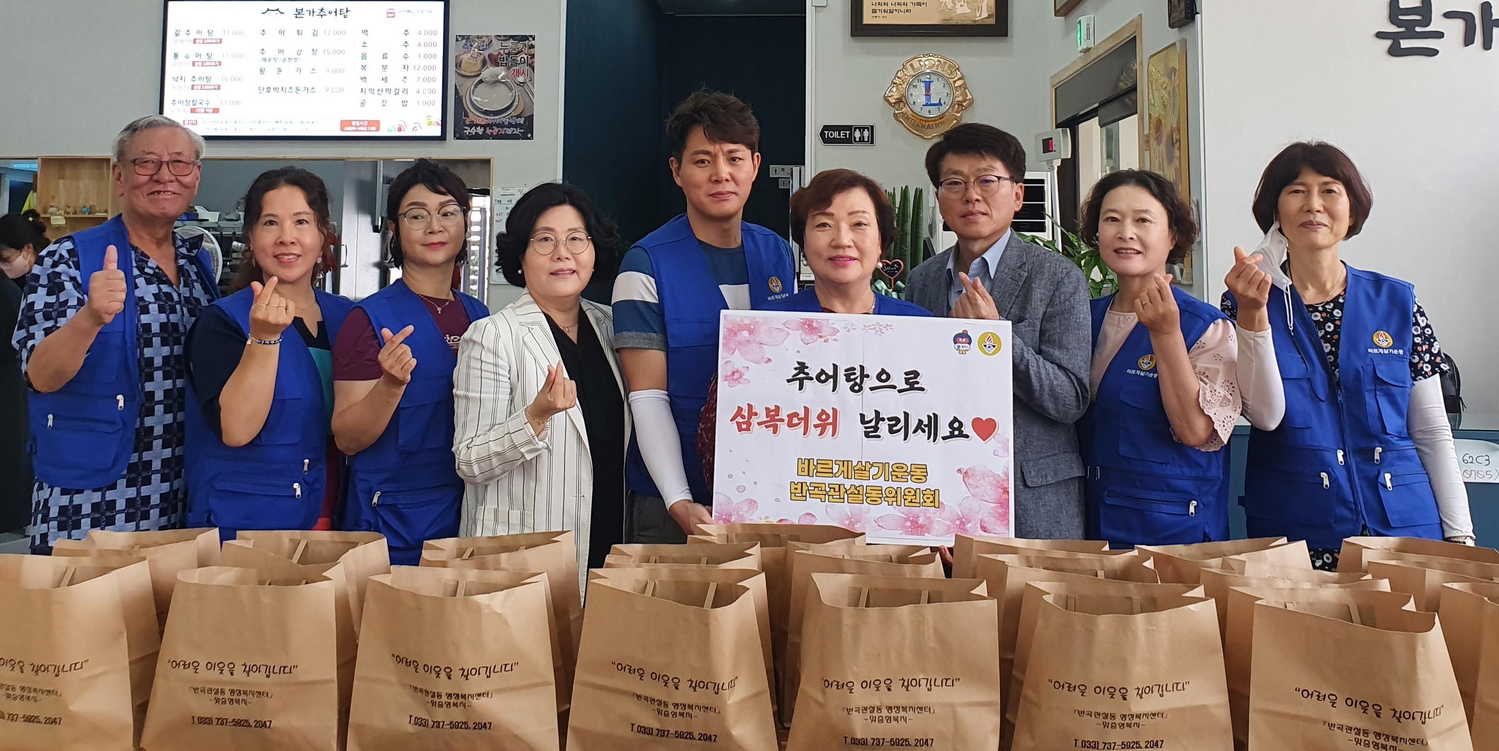 [강원사회복지신문 서은진 기자]=원주시 반곡관설동 바르게살기운동위원회(위원장 임월순)는 지난 7월 26일 중복을 맞아 독거노인 등 취약계층 20가구에 건강을 기원하는 추어탕을 전달했다.