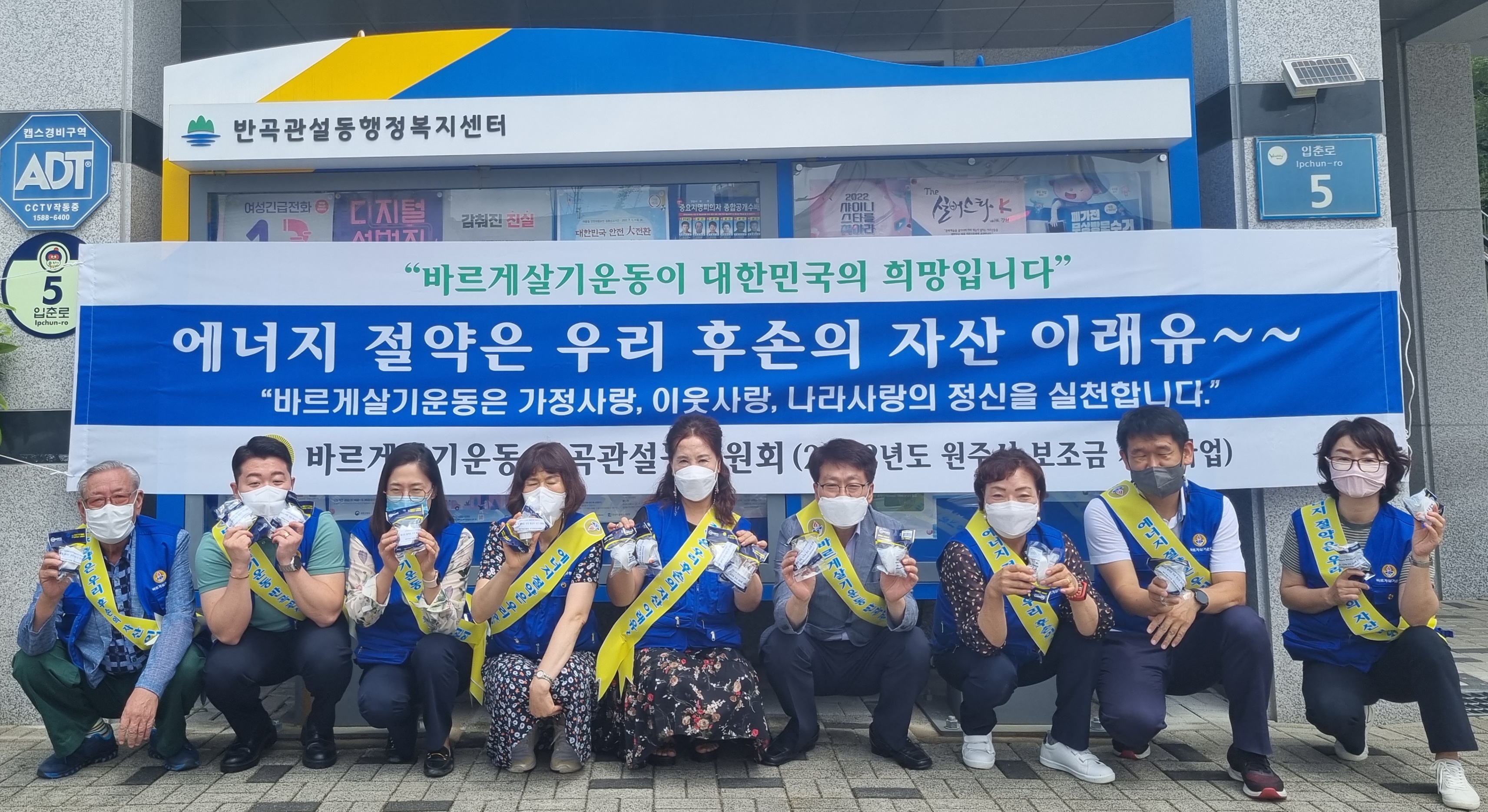 [강원사회복지신문 서은진 기자]=원주시 반곡관설동 바르게살기위원회(위원장 임월순)는 지난 7월 22일 반곡관설동 일원에서 에너지절약 캠페인을 개최했다. 위원들은 에너지절약 방법과 가스 전기 안전 사용 안내문과 홍보물을 제작해 시민들에게 나눠주며 캠페인 참여를 호소했다.