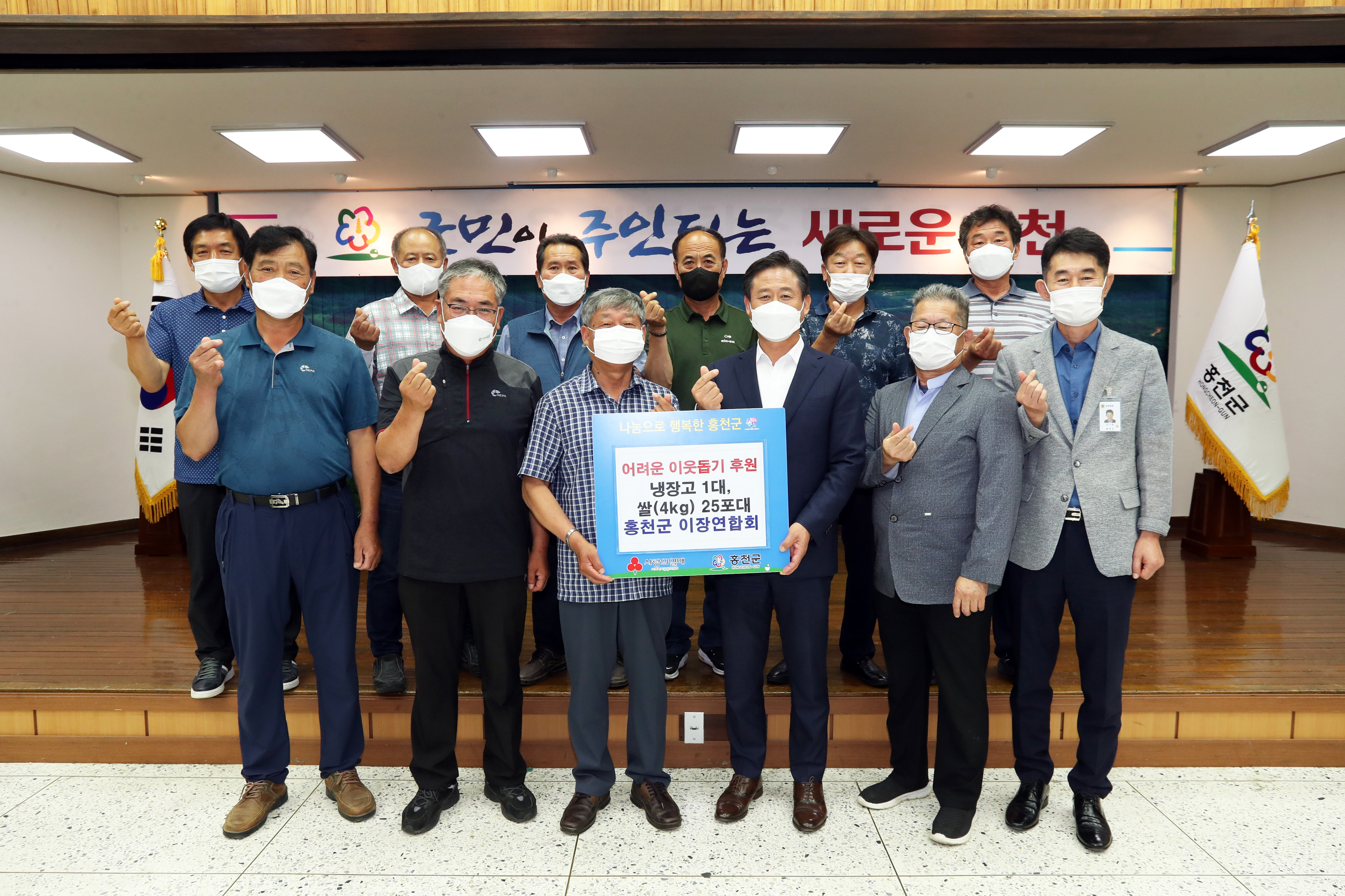 [강원사회복지신문 홍기한 기자]=홍천군 이장연합회(회장 박경환)는 지난 7월 12일 홍천군청을 방문, 홍천군 사회복지시설·기관연합회(회장 김뢰영)에 후원물품을 전달했다. 후원물품은 냉장고 1대와 쌀(1포 4kg) 25포로 관내 사회복지시설에 전달될 예정이다. 박경환 회장은 "지난 8일 개최된 제21회 이장 화합의 한마당 행...