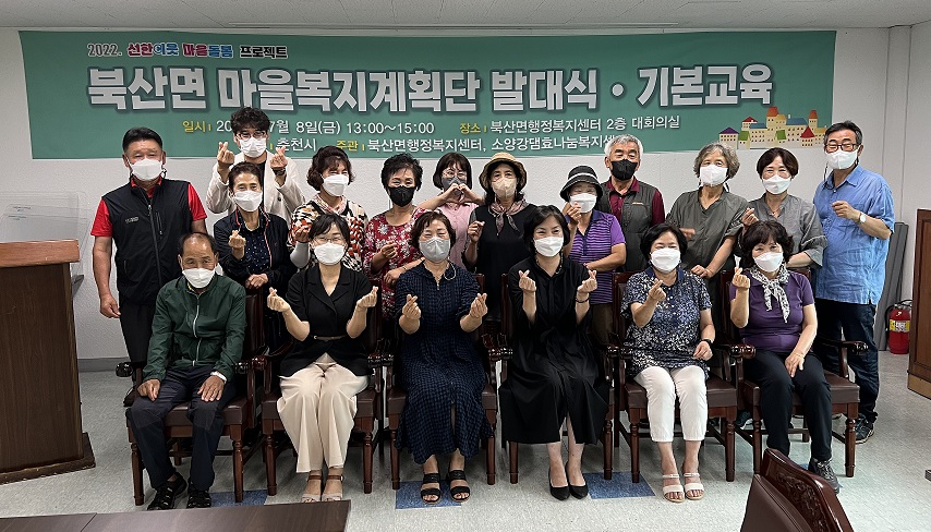 [강원사회복지신문 서은진 기자]=춘천시 북산면 마을복지계획단은 지난 7월 8일 북산면 행정복지센터에서 마을복지계획단원 17명이 참여한 가운데 발대식을 가졌다.
