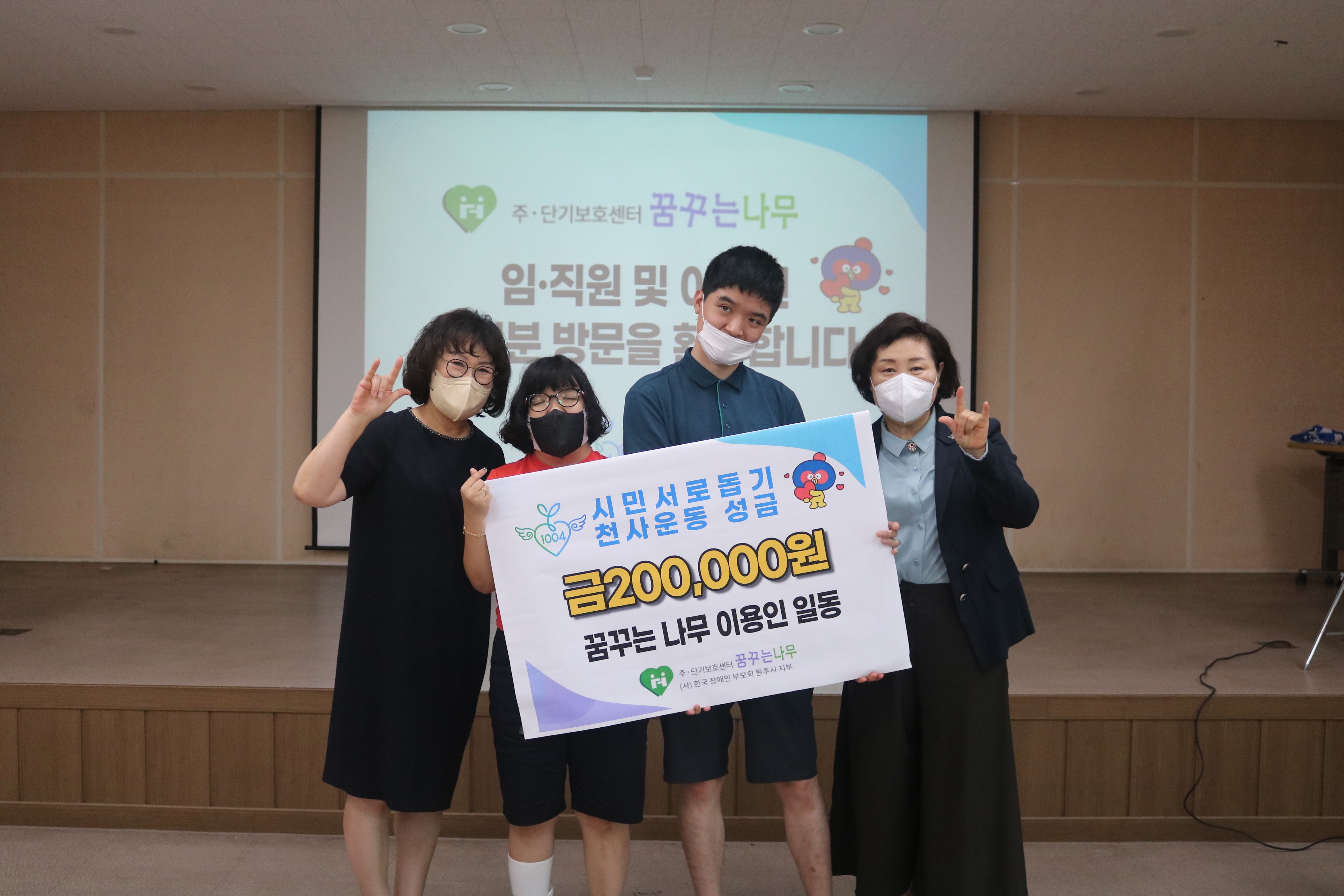 [강원사회복지신문 이정환 기자]=주·단기보호센터 꿈꾸는 나무(원장 이명숙)에서는 이용인(대표 최경환, 이다솜)과 함께 지난 6월 30일 원주시사회복지협의회를 방문하여, 전시회를 통해 발생한 수익금 20만 원을 시민서로돕기 천사운동으로 후원하였다. 후원금은 지난 1년간 이용인들이 직접 만든 작품으로 전시회를 개최하...