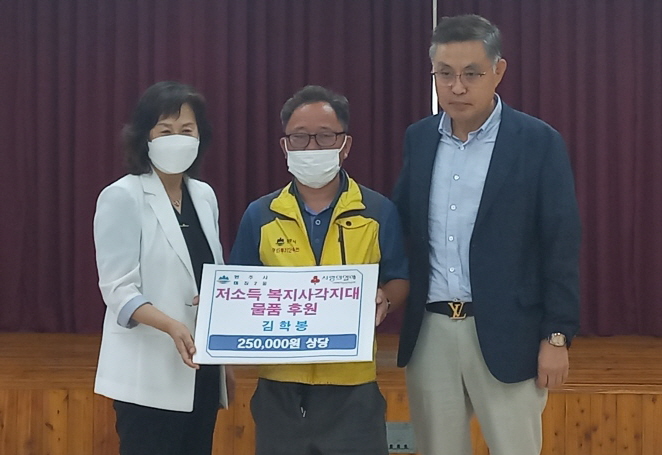 [강원사회복지신문 서은진 기자]=원주시 태장2동 행정복지센터에서 근무하는 공무직 공무원 김학봉 씨는 지난 6월 30일 복지사각지대에 놓인 어려운 소외계층을 돕고 싶다며, 25만 원 상당의 레토르트 삼계탕 50팩을 태장2동 행정복지센터에 전달했다. 김학봉씨는 "복지사각지대에 놓여 정부의 지원을 받지 못해 더욱 힘든 시...