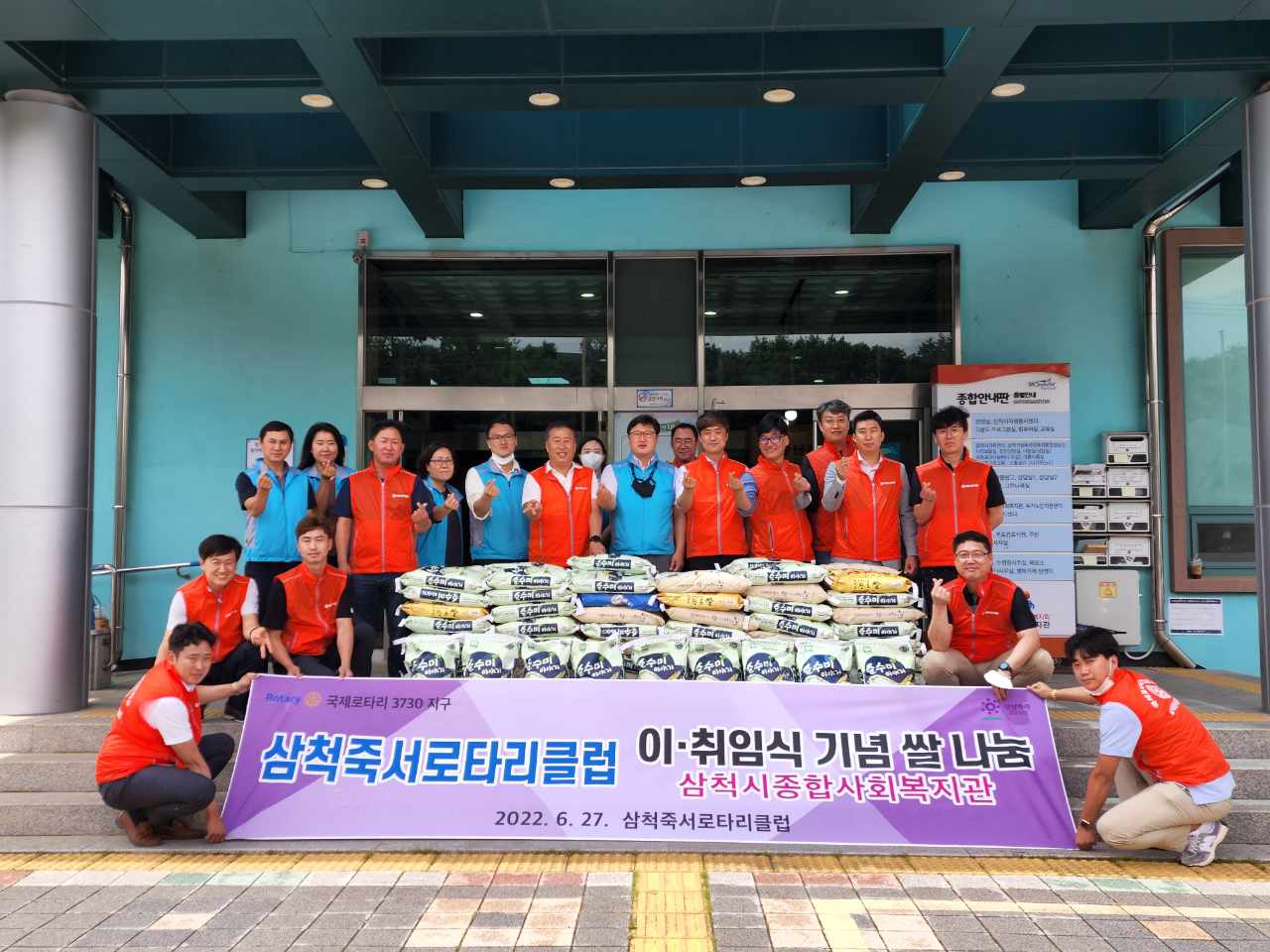 [강원사회복지신문 김종한 기자]=국제로타리 3730지구 삼척죽서로타리클럽(회장 김민호)은 2022년 이·취임식 행사를 기념하여 화환을 받는 대신 쌀 116포(약 3,000,000원 상당)를 지난 6월 27일 삼척시종합사회복지관에 기탁했다. 삼척시종합사회복지관 김진상 관장은 "코로나 이후 얼어붙었던 후원심리가 빠르게 회복하면서...