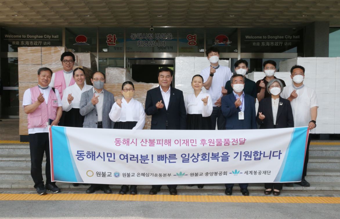 [강원사회복지신문 김종한 기자]=원불교중앙봉공회(회장 전시경)가 지난 6월 21일 동해시청을 방문해 산불피해 이재민을 위한 2,500만원 상당의 식품꾸러미를 전달했다. 원불교중앙봉공회는 지난 산불 발생 시 삼화동의 산불현장을 방문해 진화요원들을 위한 도시락을 제공했으며, 국가철도공단 망상수련원에 임시거주하는 이...