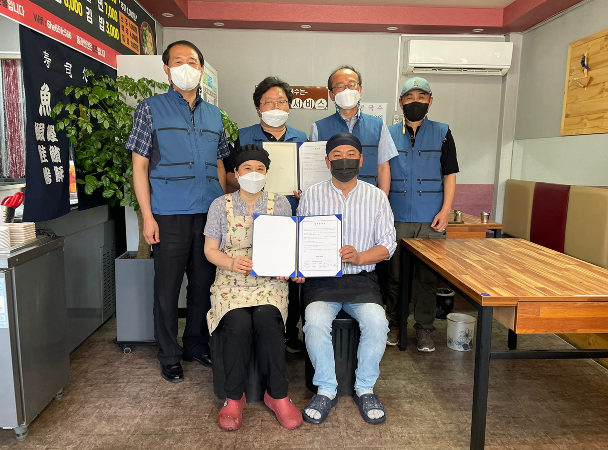 [강원사회복지신문 서은진 기자]=원주시 학성동 지역사회보장협의체(위원장 임병재·김영기)는 지난 6월 13일 관내 음식점인 역전기계우동(대표 김춘근)과 어려운 이웃에게 식사 지원을 위한 '524(오늘도 이웃에게 사랑을) 나눔동행' 협약을 체결했다.
