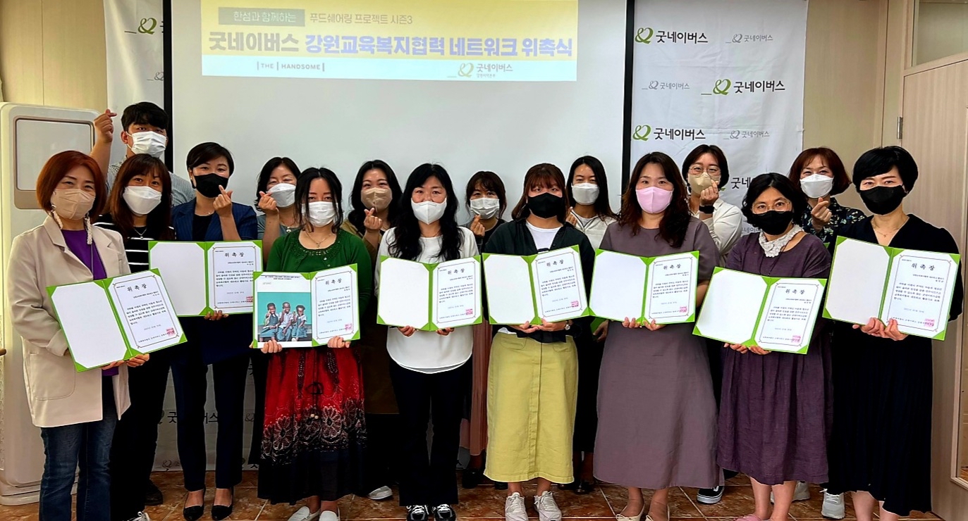 [강원사회복지신문 서은진 기자]=원주교육지원청 교육복지사·원주지역 내 초·중·고등학교 교육복지사로 구성 지역사회 내 네트워크 구축 및 원활한 사업 진행과 지역사회 욕구 반영 목적 굿네이버스 강원지역본부(본부장 박미경)는 원주지역 교육기관 교육복지사 17명과 함께 '굿네이버스 강원 교육복지협력 네트워크 위촉...