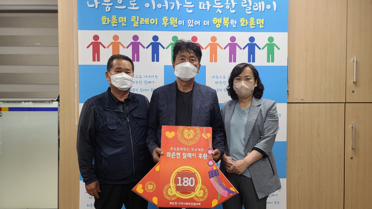 [강원사회복지신문 홍기한 기자]=홍천군 화촌면 지역사회보장협의체가 후원문화 확산을 위해 진행하고 있는 '화촌면 릴레이 후원'에 후원자들의 온정의 손길이 이어지고 있다. 이원재 풍천2리 이장은 지난 6월 3일 화촌면 행정복지센터를 방문, 화촌면 릴레이 후원 180번째 주자로 참여하고 후원금을 기탁했다. 이원재 이장은...