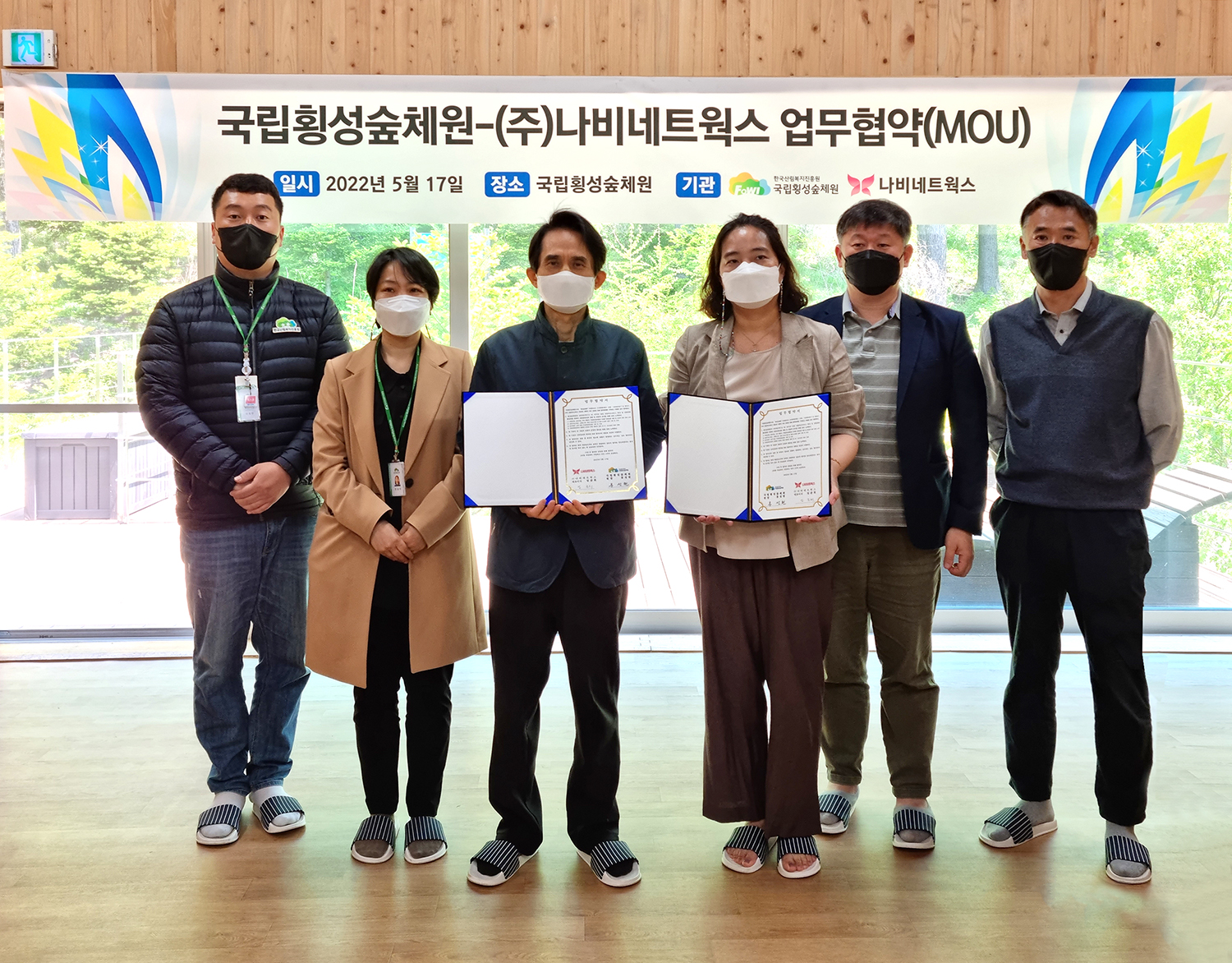 [강원사회복지신문 이정환 기자]=산림복지서비스확산과 사회적 가치 실현을 위한 협력체계 구축 산림청 한국산림복지진흥원 소속기관인 국립횡성숲체원(원장 홍성현)은 (주)나비네트워스와 업무협약(MOU)을 체결했다고 지난 5월 17일 밝혔다. 이번 업무협약은 상호 기관 간 유기적 협력을 통해 내·외국인 대상산림복지서비스...