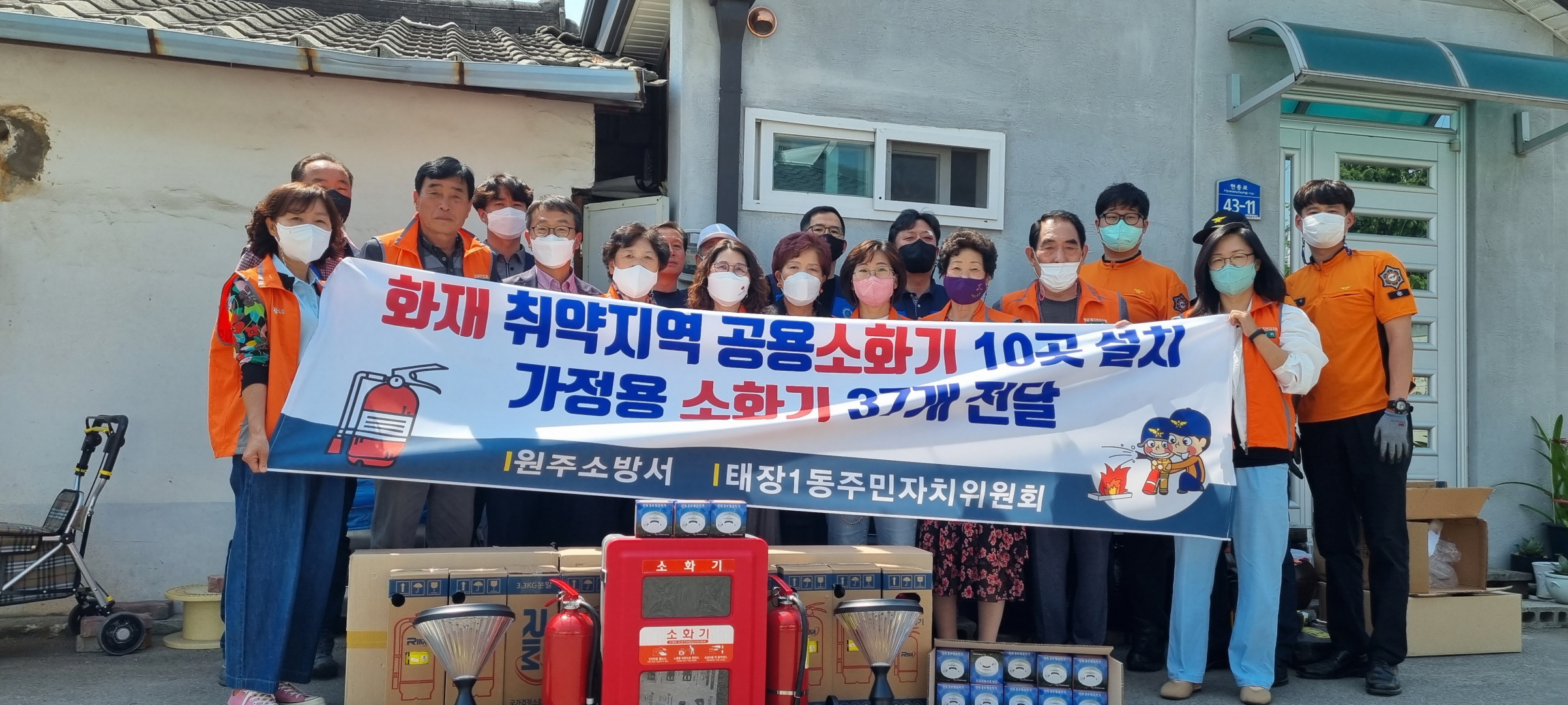 [강원사회복지신문 서은진 기자]=원주시 태장1동 주민자치위원회(위원장 고영식)와 원주소방서(서장 김용한)는 지난 5월 17일 화재 취약지역·가구에 소화기 등을 무료로 지원했다. 노후 주택이 밀집한 화재 취약지역 10개소에 공용 소화기와 방범등을, 독거노인 등 취약계층 37가구에 가정용 소화기를 배부했다. 이날 지원활...