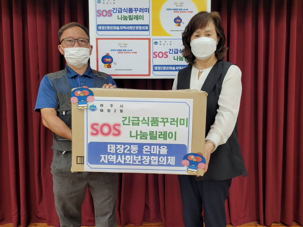 [강원사회복지신문 이정환 기자]=원주시 태장2동 온마을지역사회보장협의체(위원장 한창희, 정은일)가 복지 사각지대 발굴대상자 지원 강화를 위한 'SOS 맞춤형 긴급꾸러미 나눔 후원' 릴레이 캠페인을 시작했다. 지난 5월 18일 태장2동에 거주하는 김학봉 님은 햇반 등 식료품을 비롯해 5만 원 이상에 상당하는 다양한 맞춤...