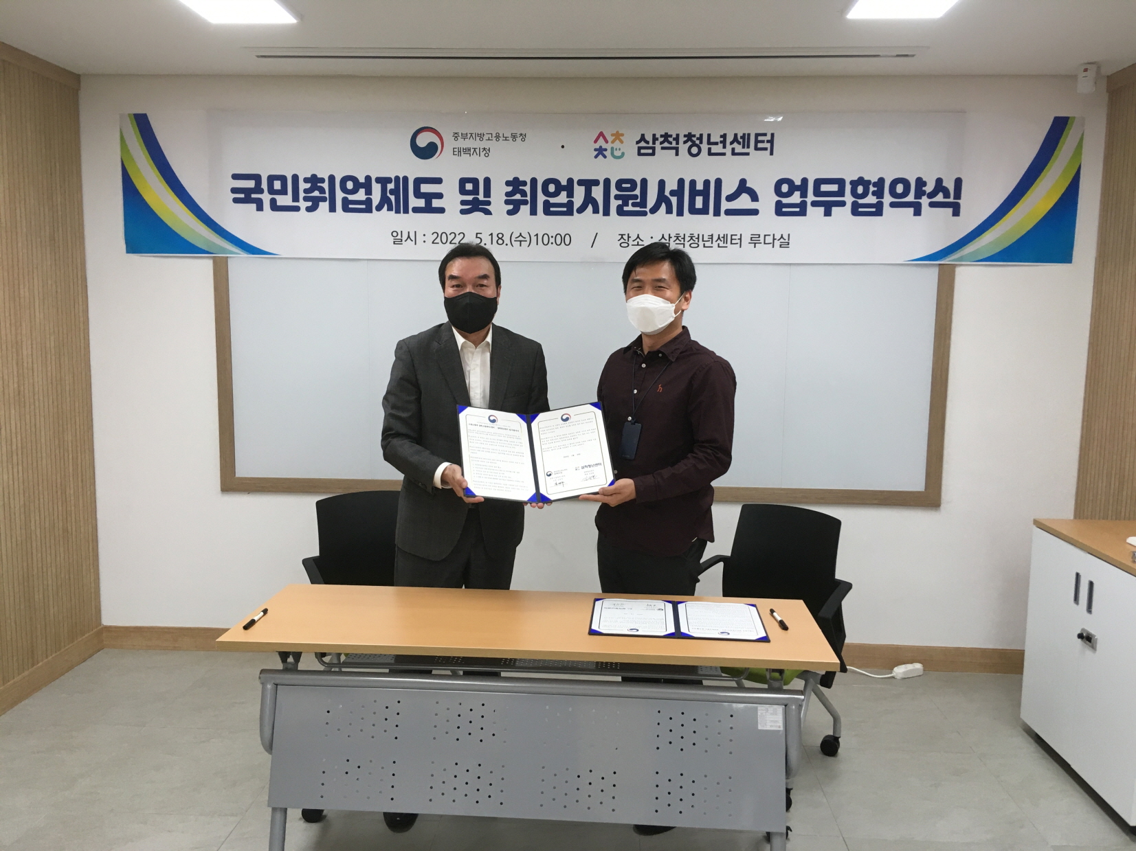 [강원사회복지신문 홍기한 기자]=삼척청년센터(센터장 김성현)는 지난 5월 18일(수), 지역 청년들의 원활한 취업을 위한 전문 서비스를 확충하기 위해 삼척고용복지플러스센터(소장 김영주)와 업무협약을 맺었다. 양 기관은 국민취업제도 소개 등의 취업지원서비스를 통해 청년들의 취업 정보 제공 및 취업 연계를 위해 힘쓸...